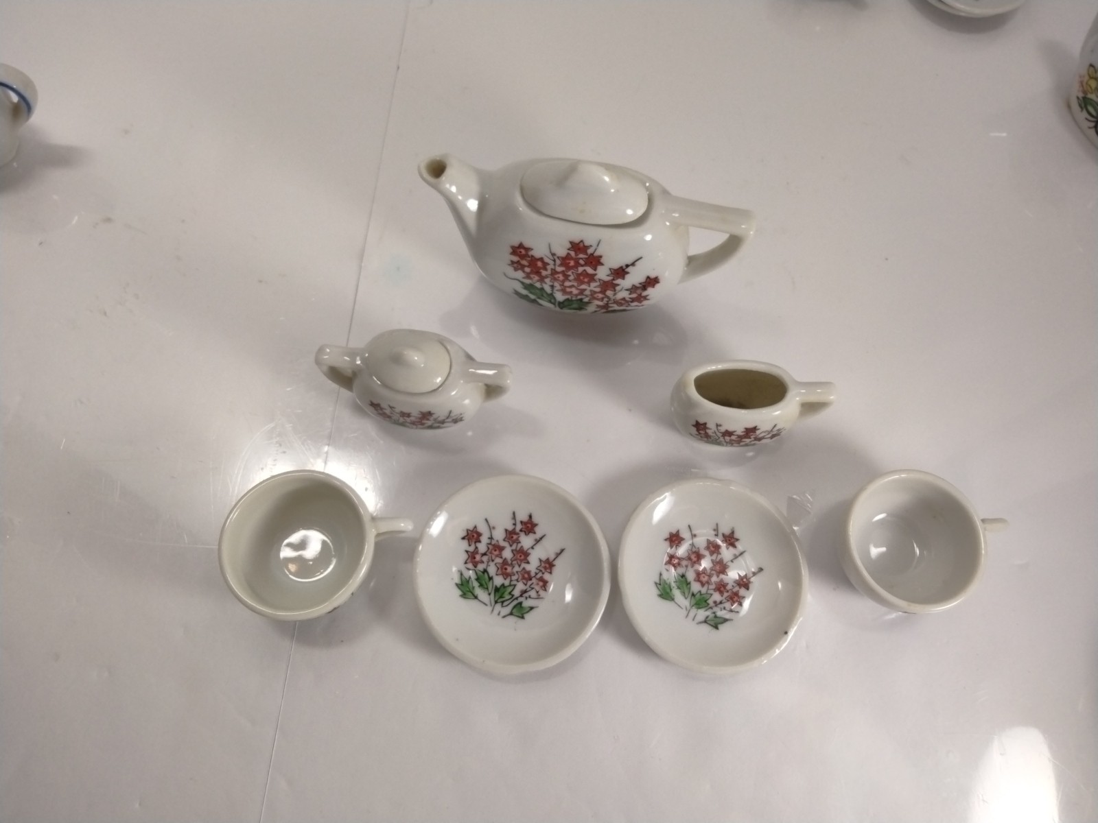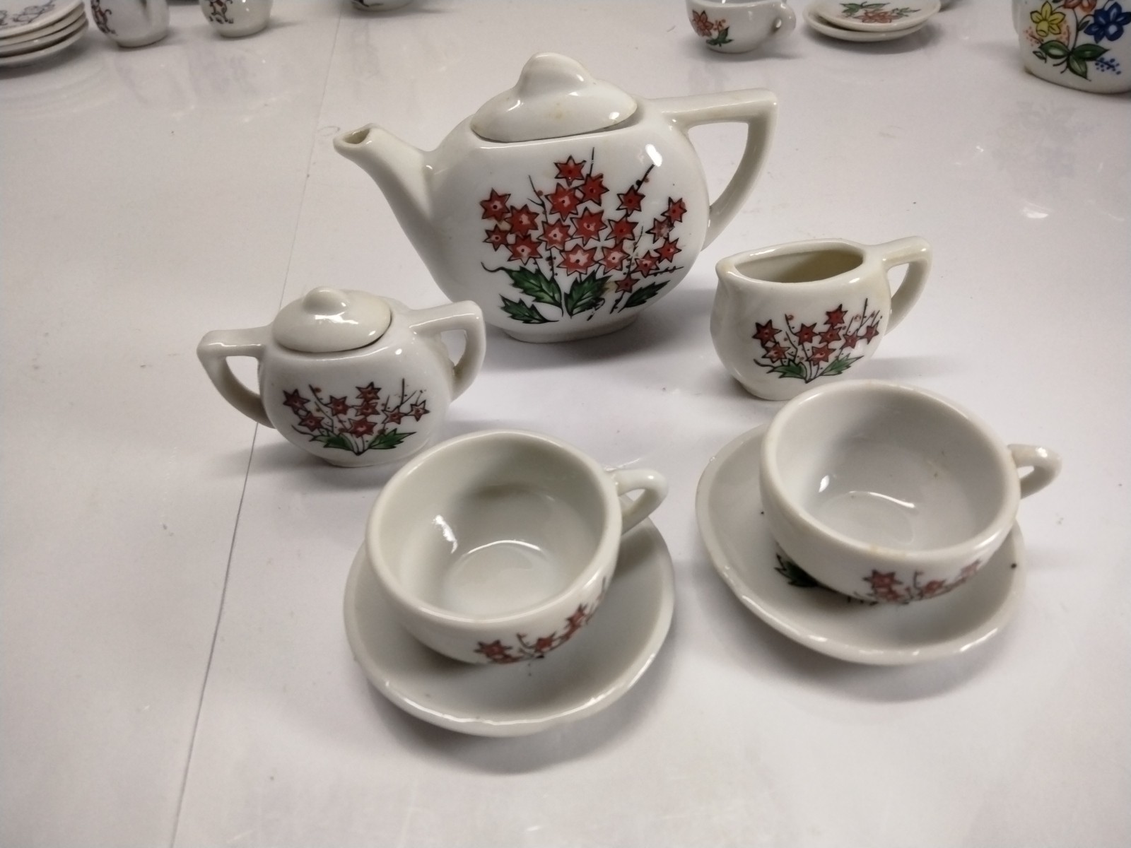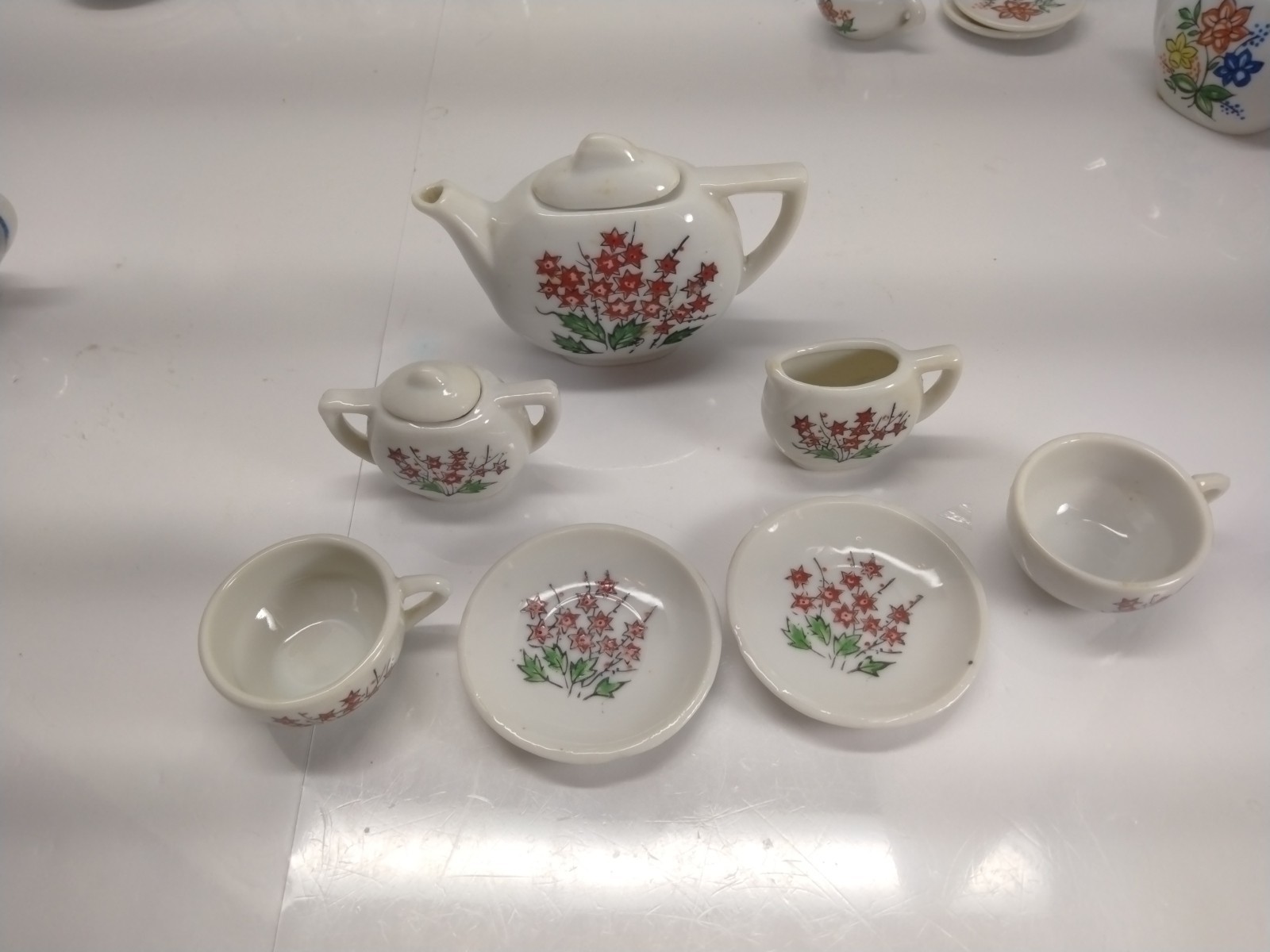 как выглядит Vintage 9pc MINIATURE TEA SET Porcelain - Floral Scene -Japan In Red фото