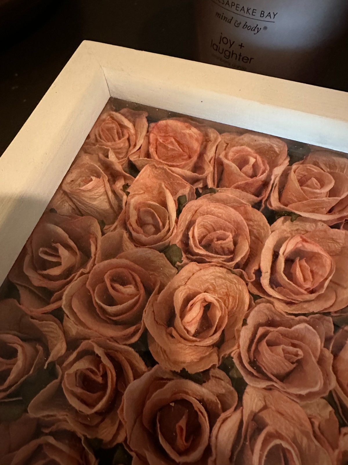 как выглядит Shadow Box Dried Rose Flowers Farmhouse White Wood Frames Cottage Core Set of 2 фото