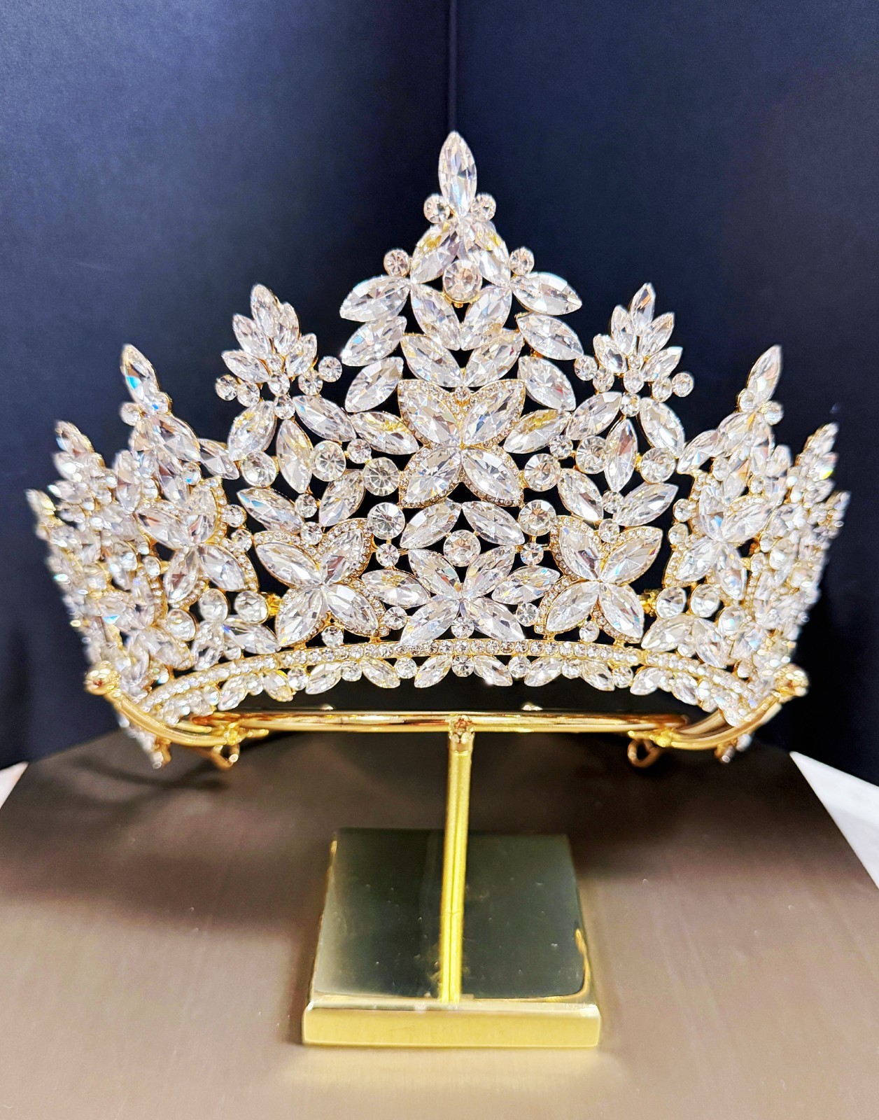 Quinceanera Crown, Vintage Crystal Crown, Crystal Bridal Tiara, Prom Gold Crown