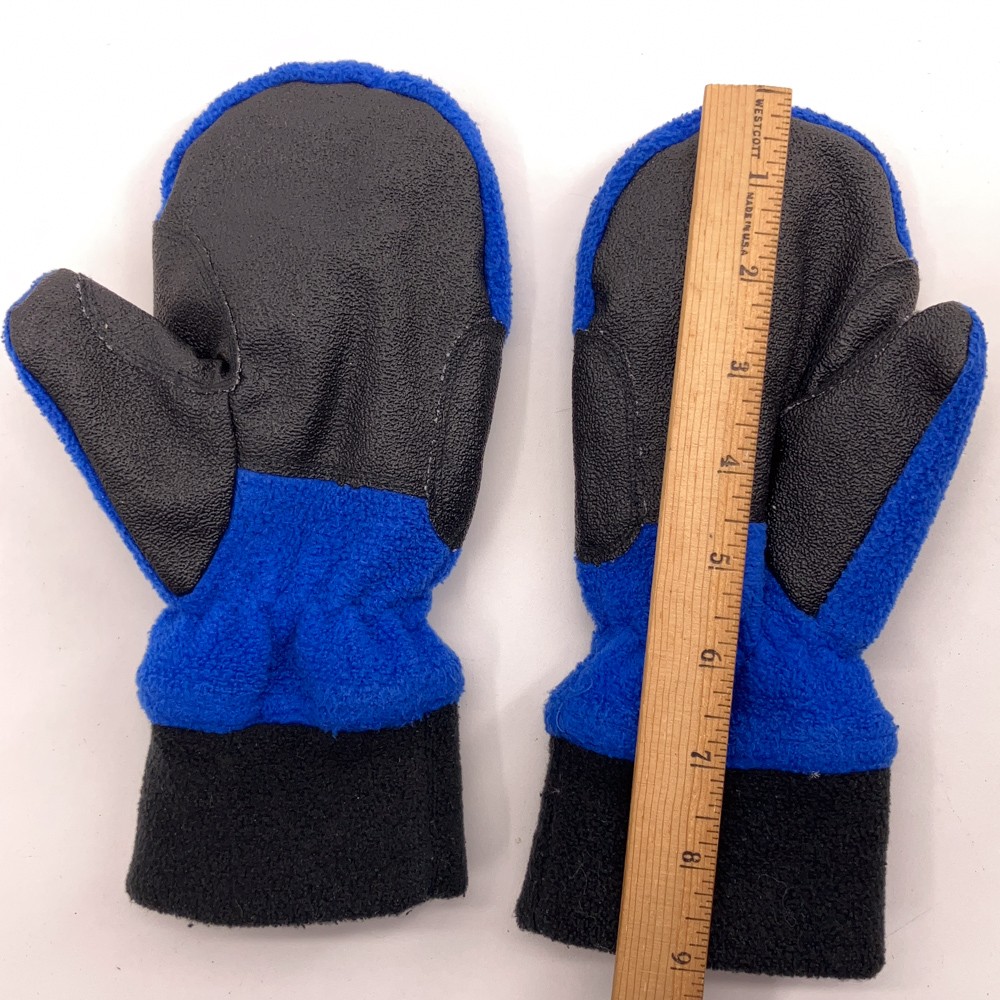 как выглядит Retro LL Bean Blue Fleece Black Kids 10-12 Mittens фото