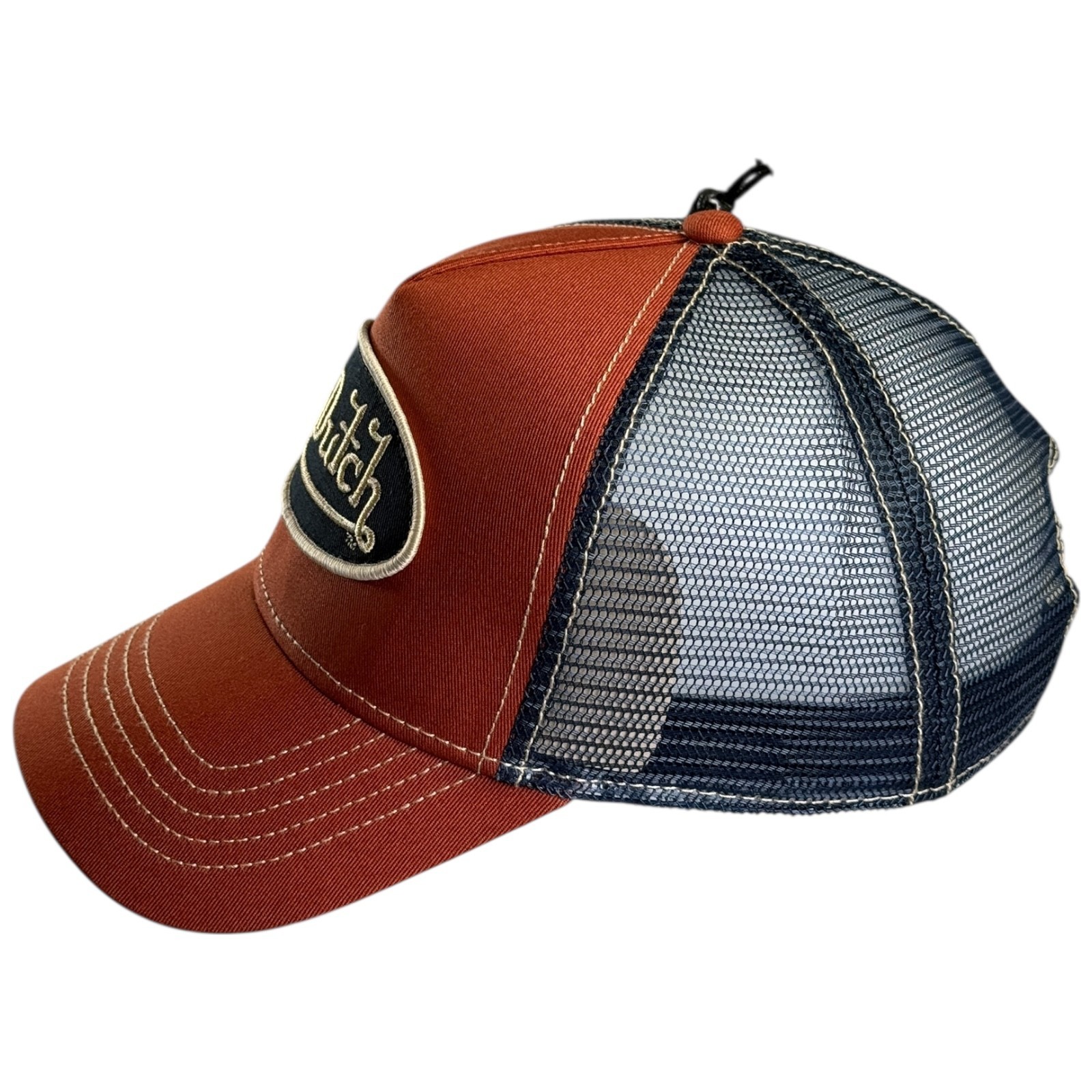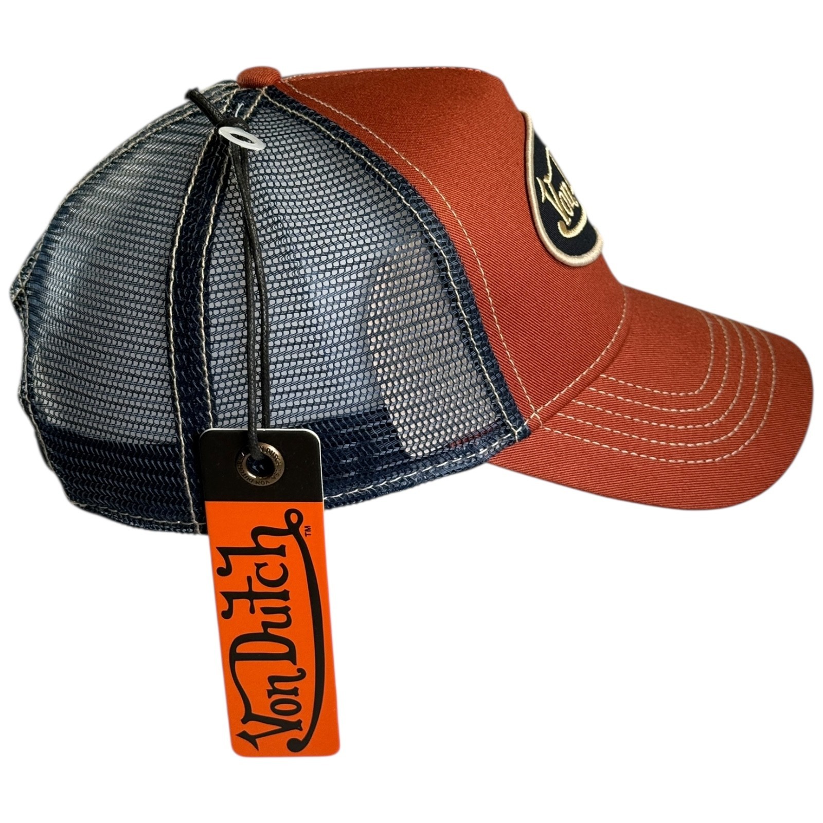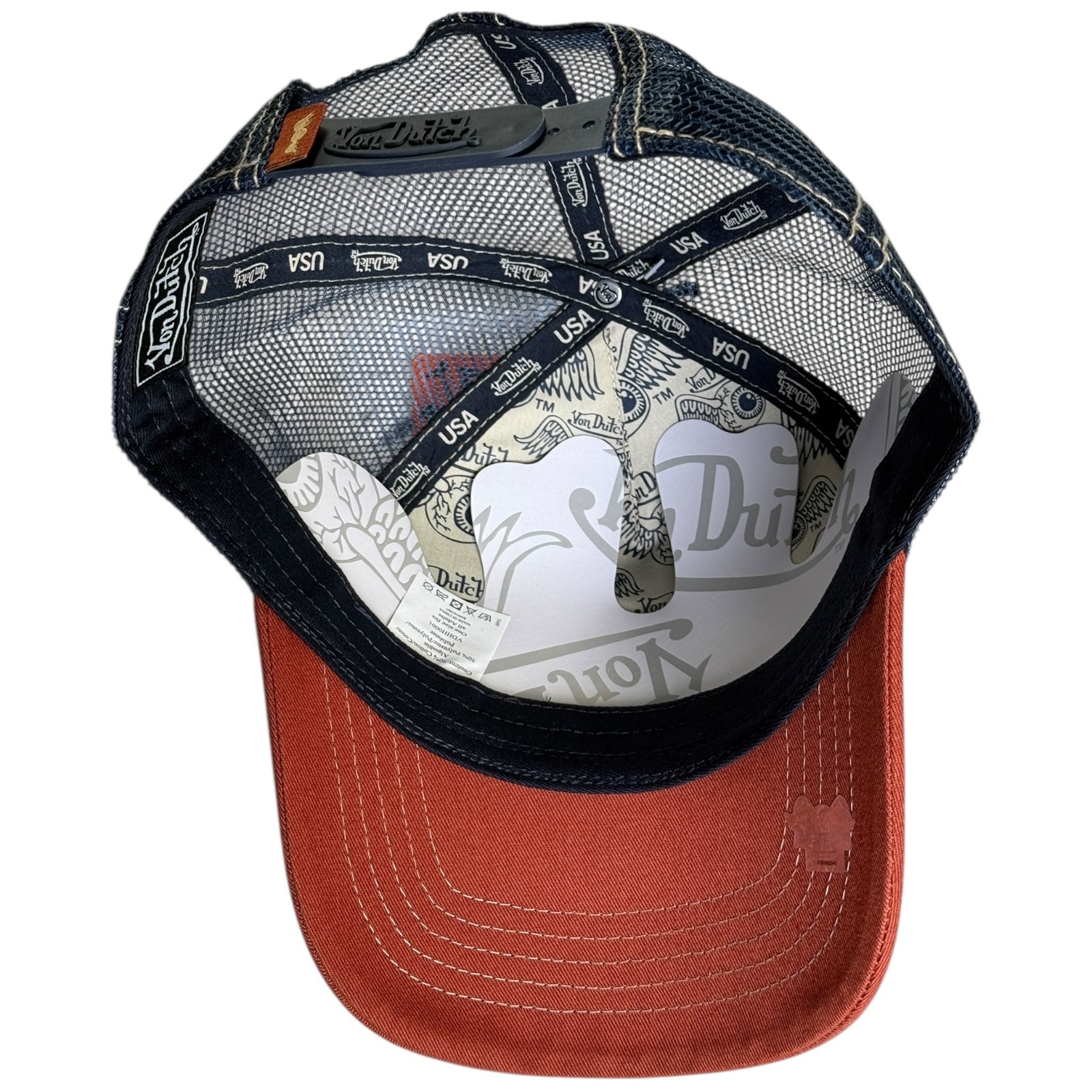 Von Dutch Hat RUST ORANGE/NAVY BLUE Patch Trucker Mesh SnapBack Cap NEW W/ TAGS