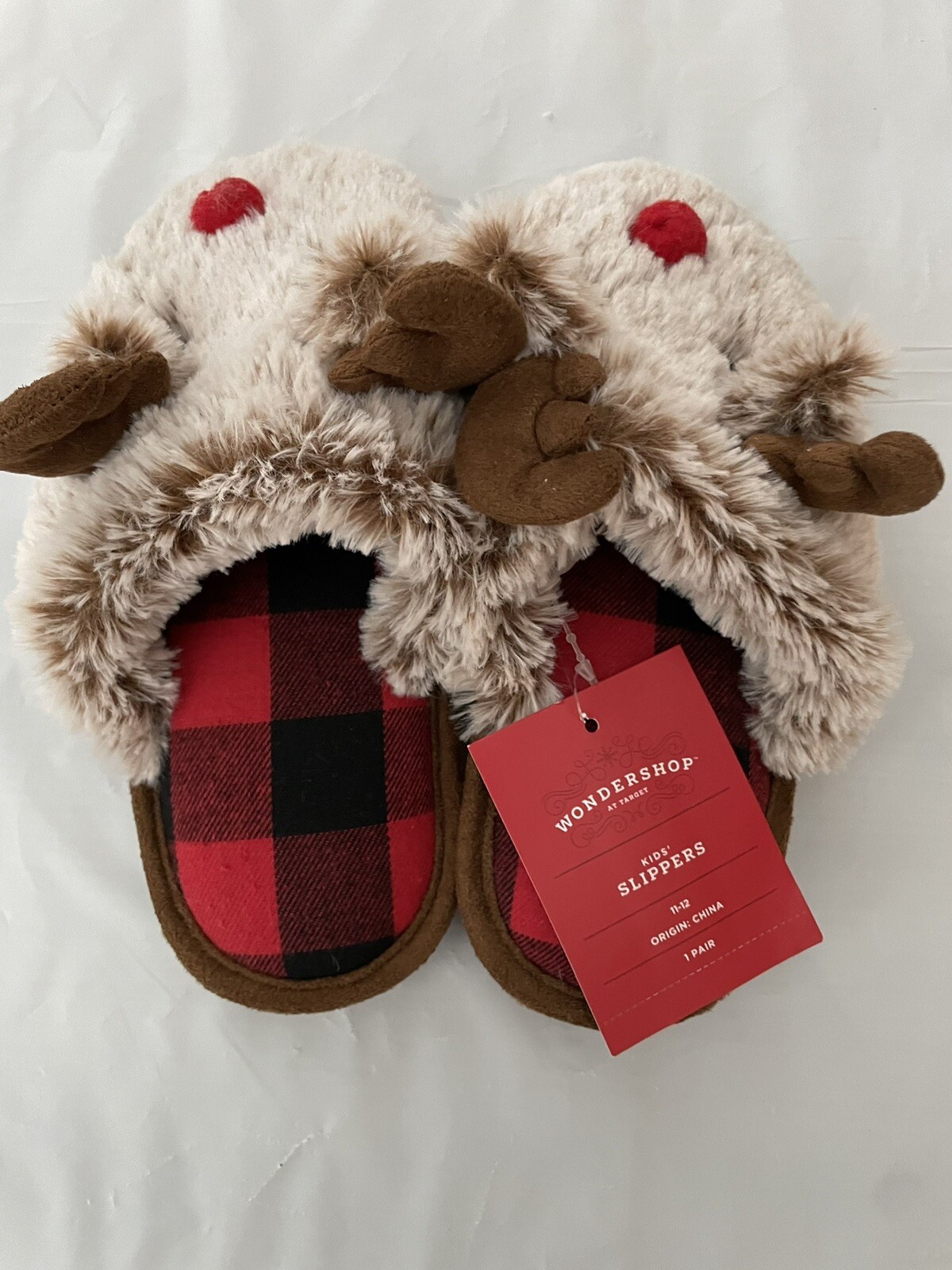 Wondershop Christmas Red Nose Reindeer Plush Scuff Slippers Childs Size 11-12