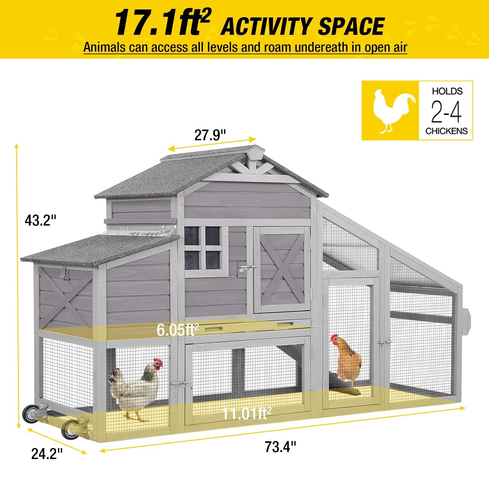 Chicken Coop Mobile Chicken House on Wheels Wooden Poultry Cage with Nesting Box
