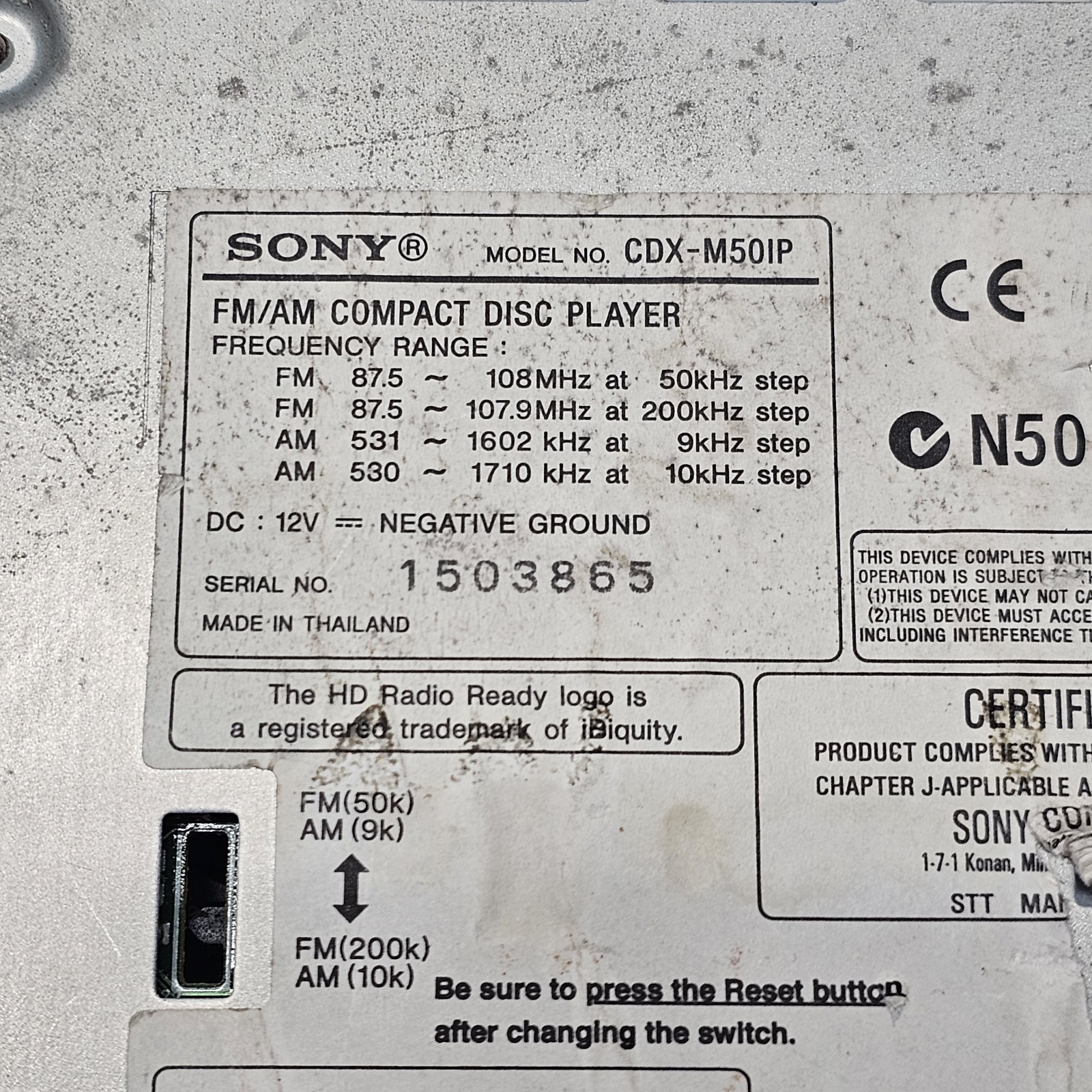 Sony CDX-M50IP Single Din Marine Radio Stereo With 30 Pin Ipod Connector TESTED