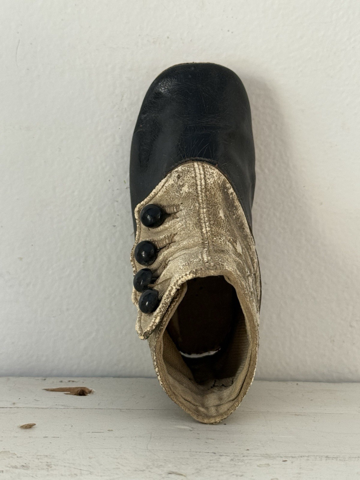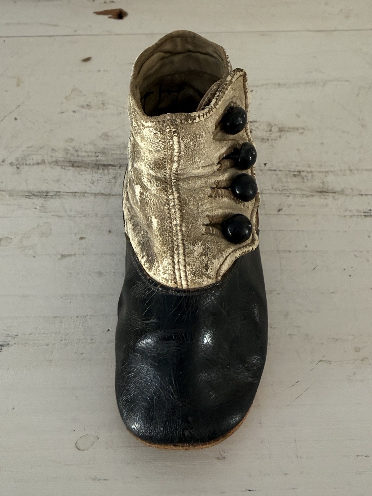 Antique Child s Shoe Bootie Well-Worn Leather Buttons Vintage 1800s - Just One