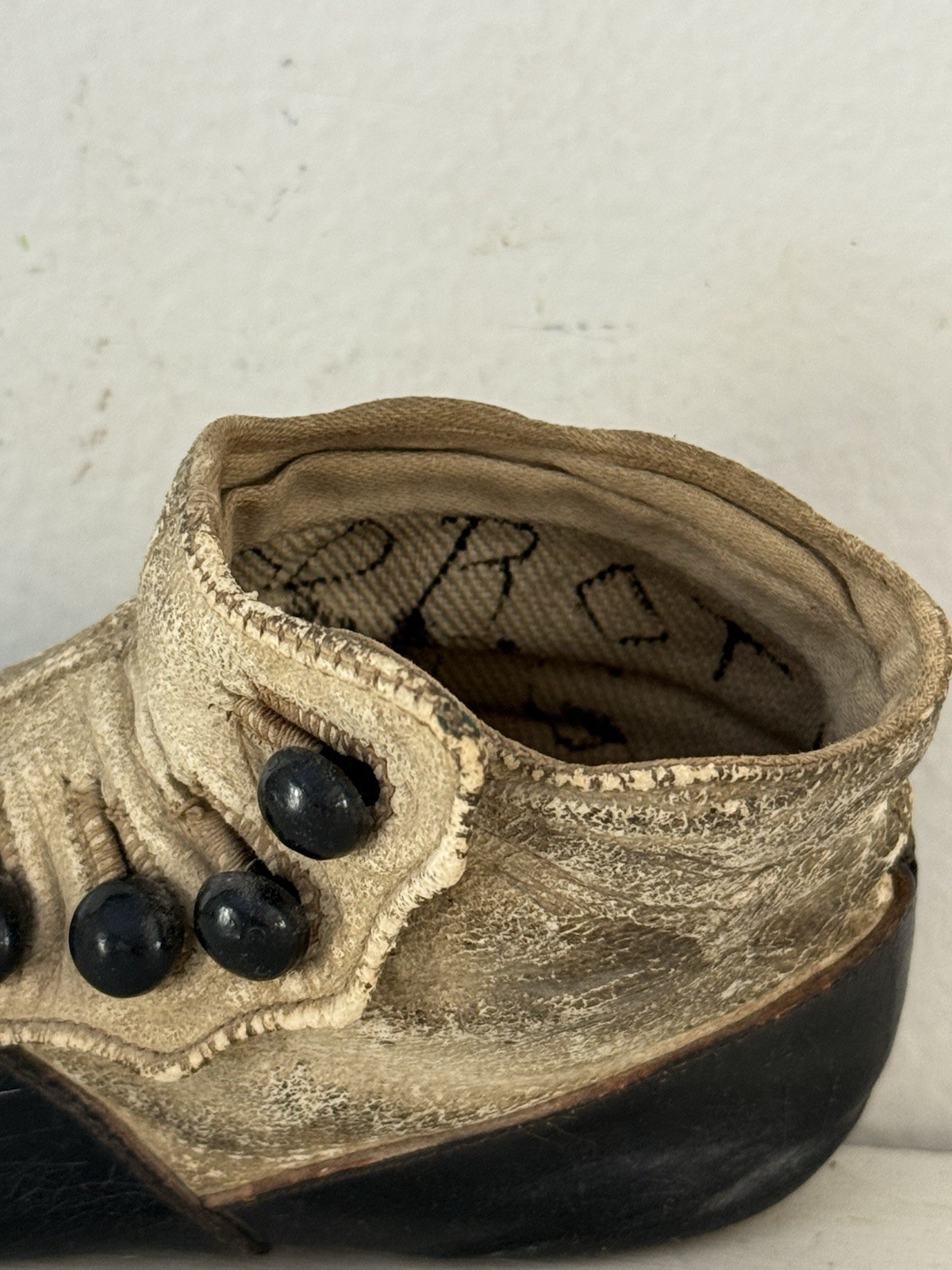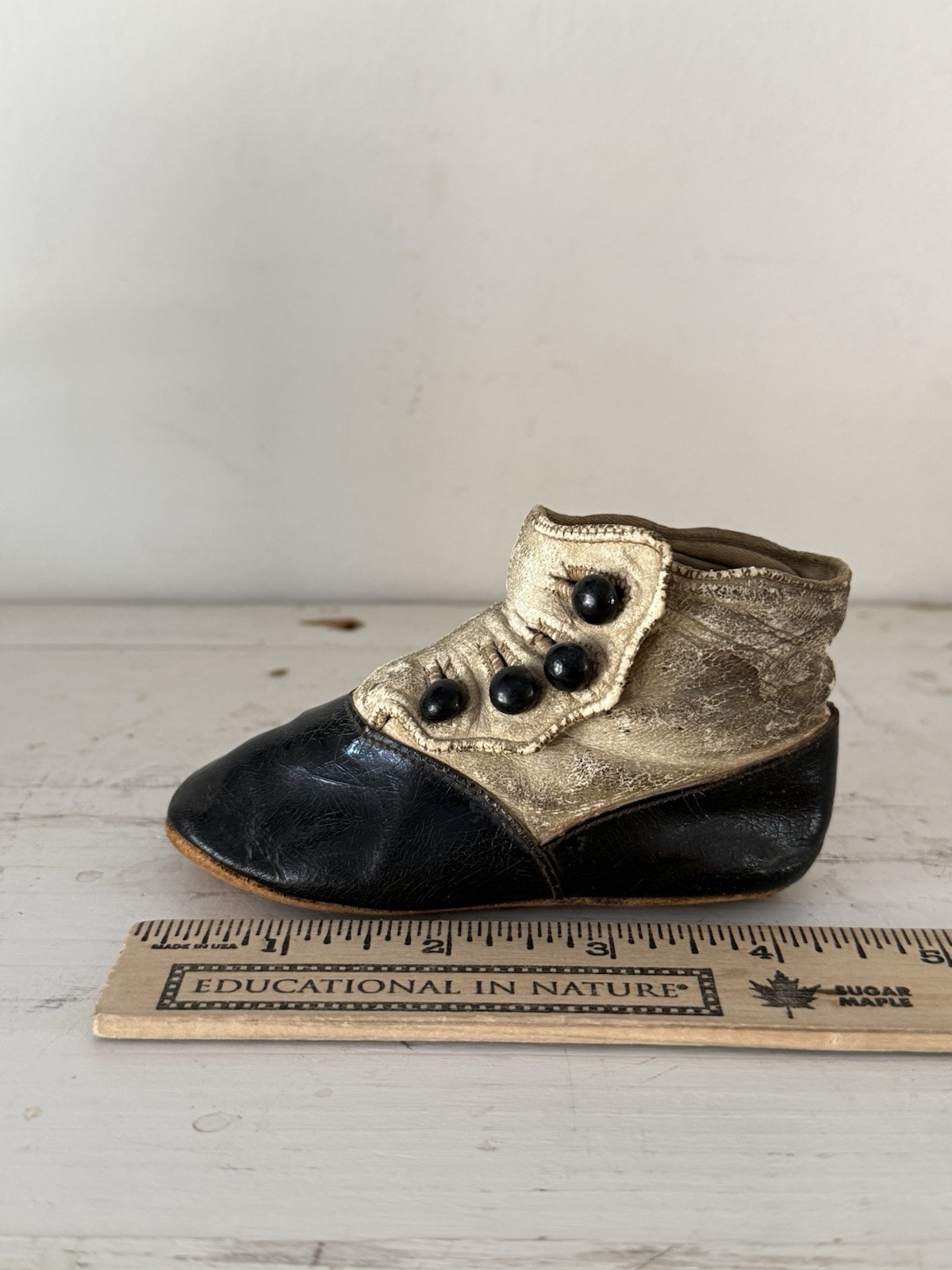 как выглядит Antique Child s Shoe Bootie Well-Worn Leather Buttons Vintage 1800s - Just One фото