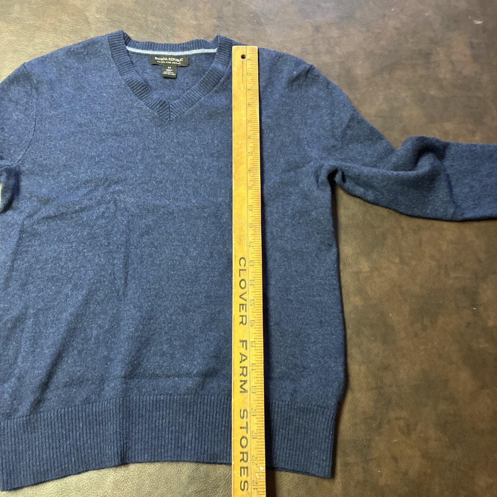 как выглядит Banana Republic Men s M SHRUNK TO SMALL V-Neck 100 Merino Wool Sweater Blue фото