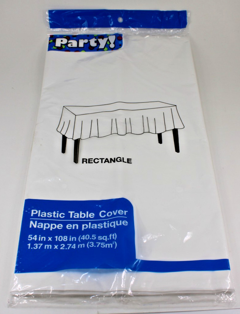 Plastic Table Cloth Disposable 8 Pack 54 X 108 Inch Table Cloths Party, White