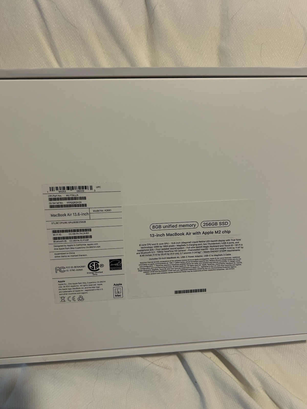Apple MacBook Air M2 Chip 8GB 256GB 13-inch EMPTY BOX ONLY- Starlight
