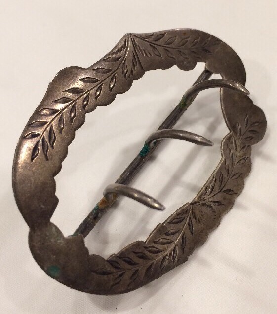 Antique Solid 925 Sterling Silver Buckle w/ Filigree Etching Signed 18g Rare