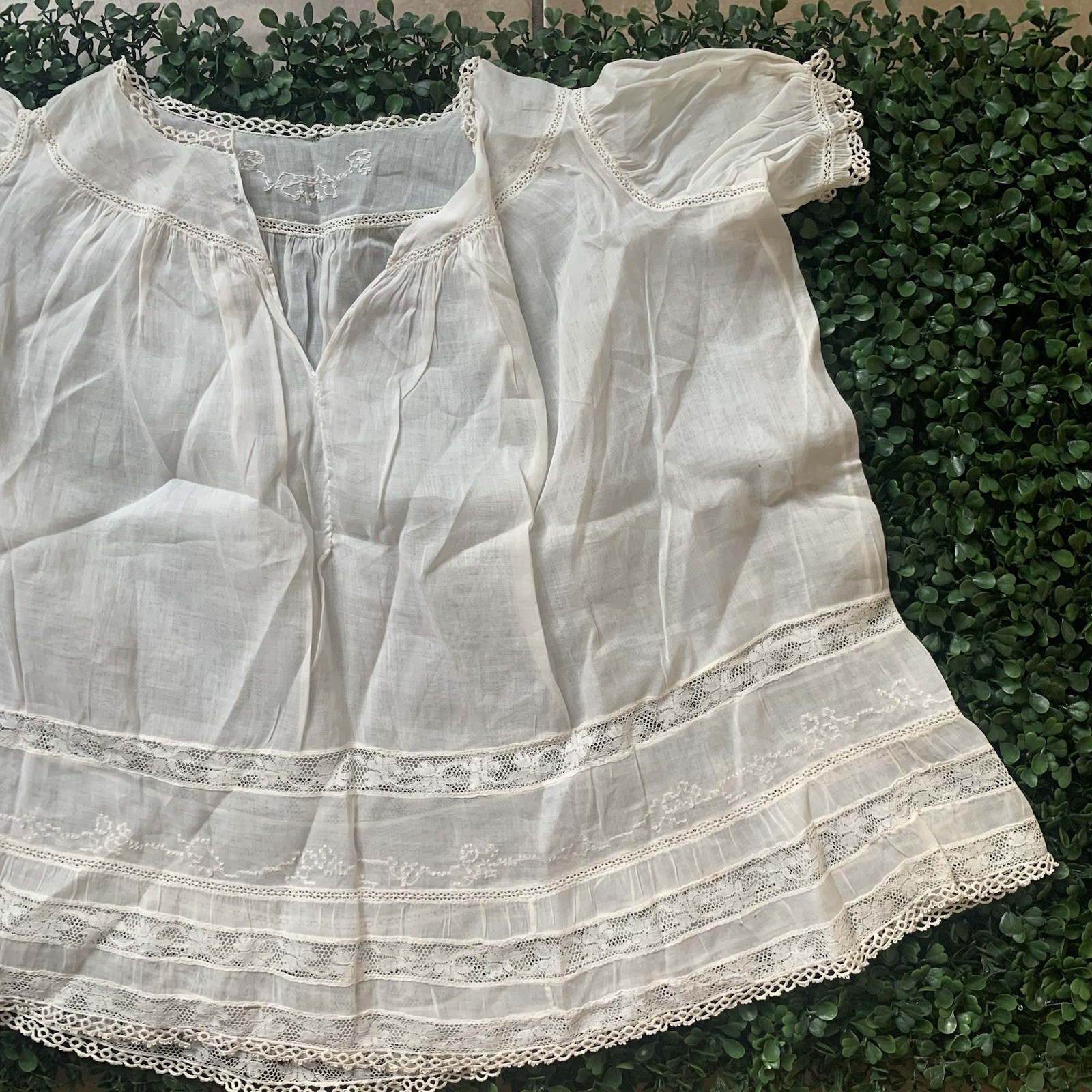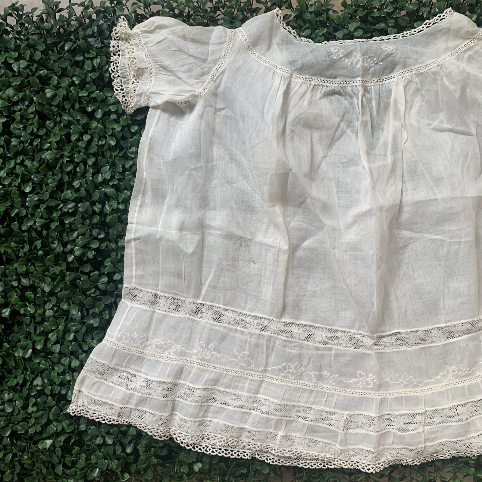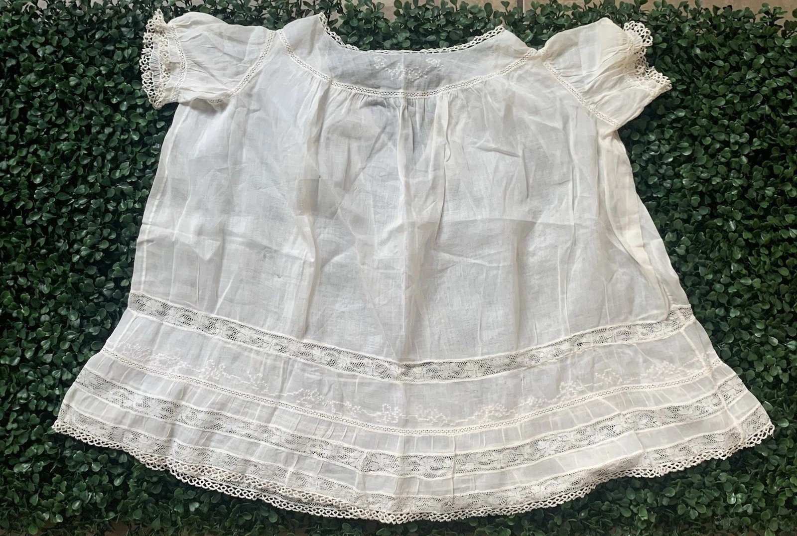 Antique Baby Infant White Cotton Lace Inlay Dress / Nightgown