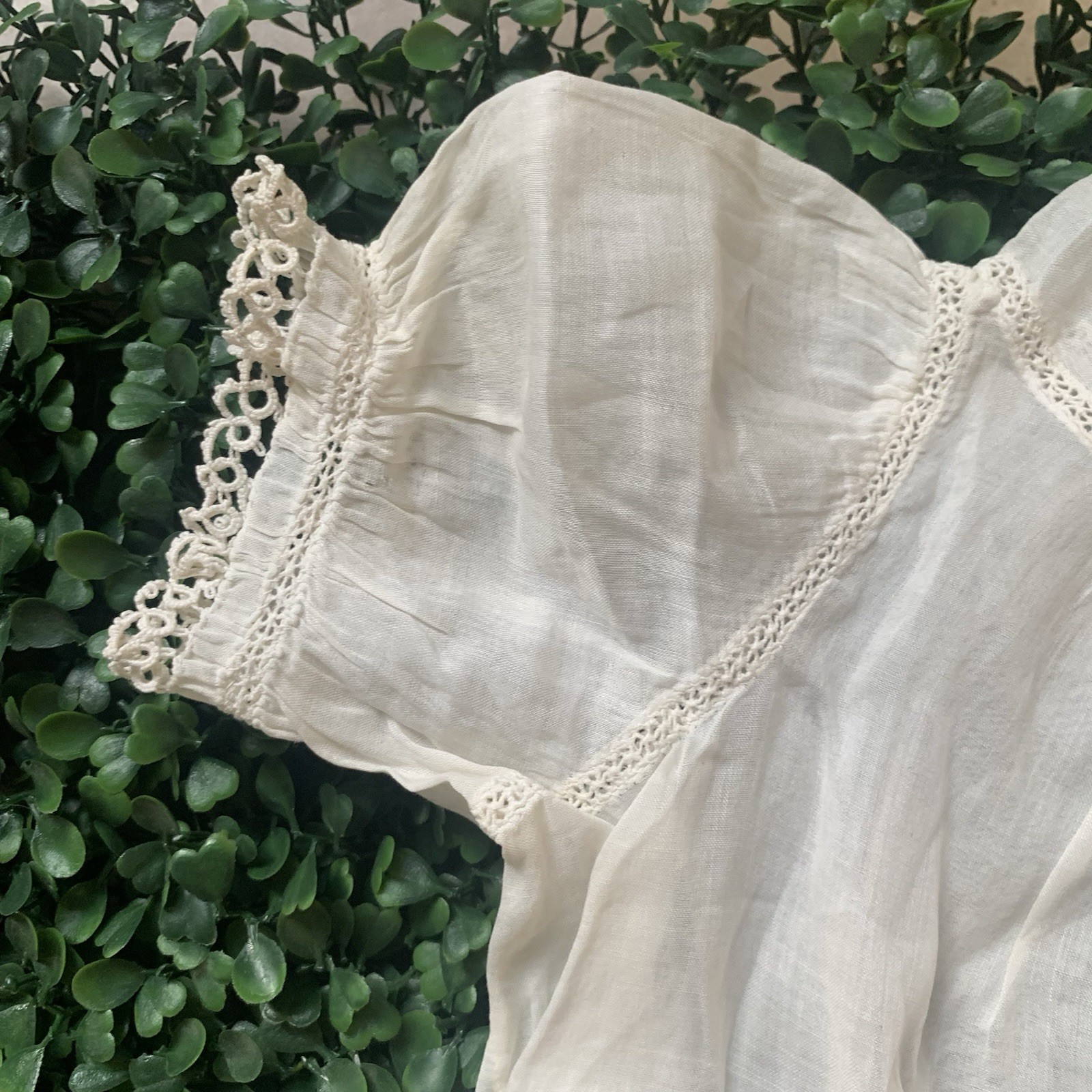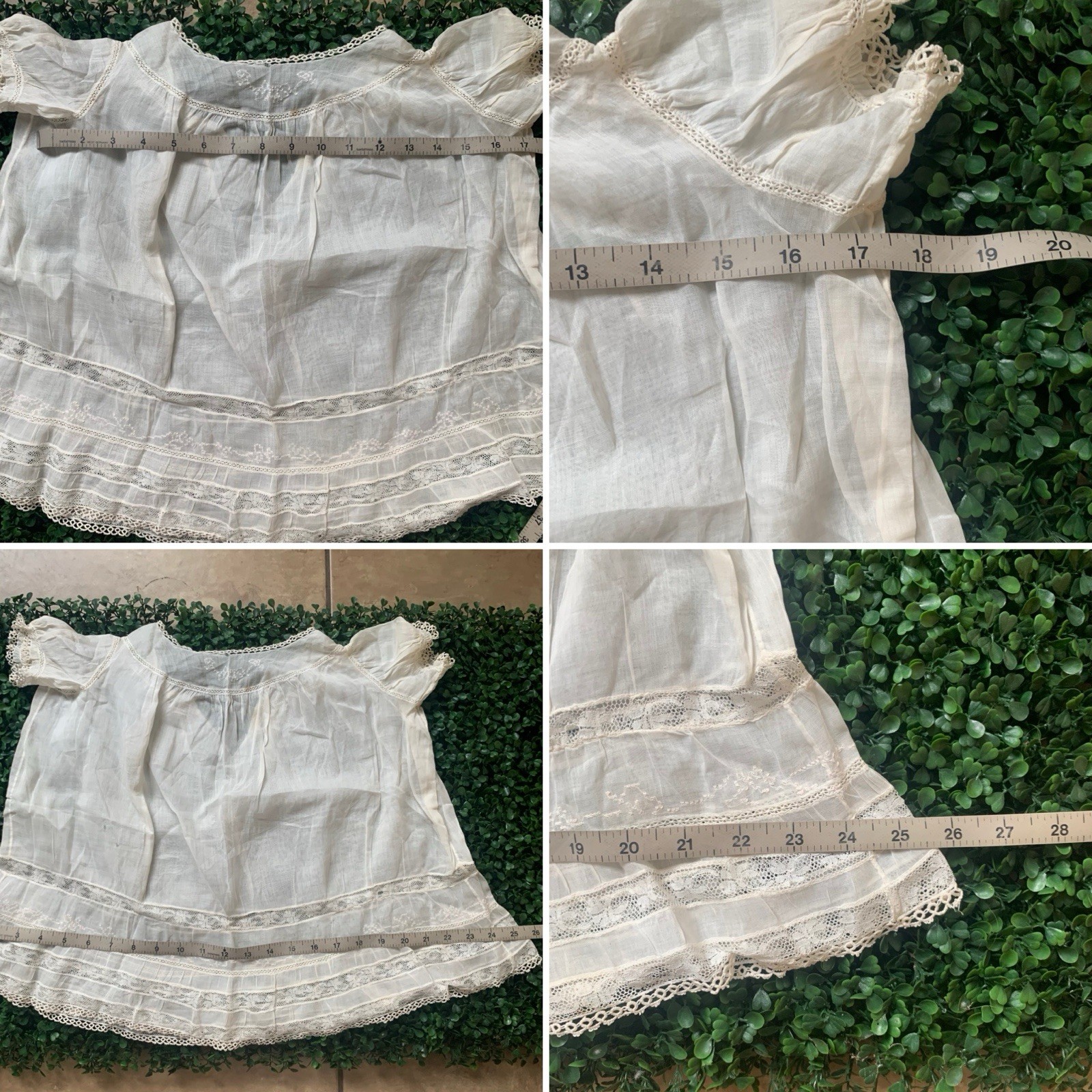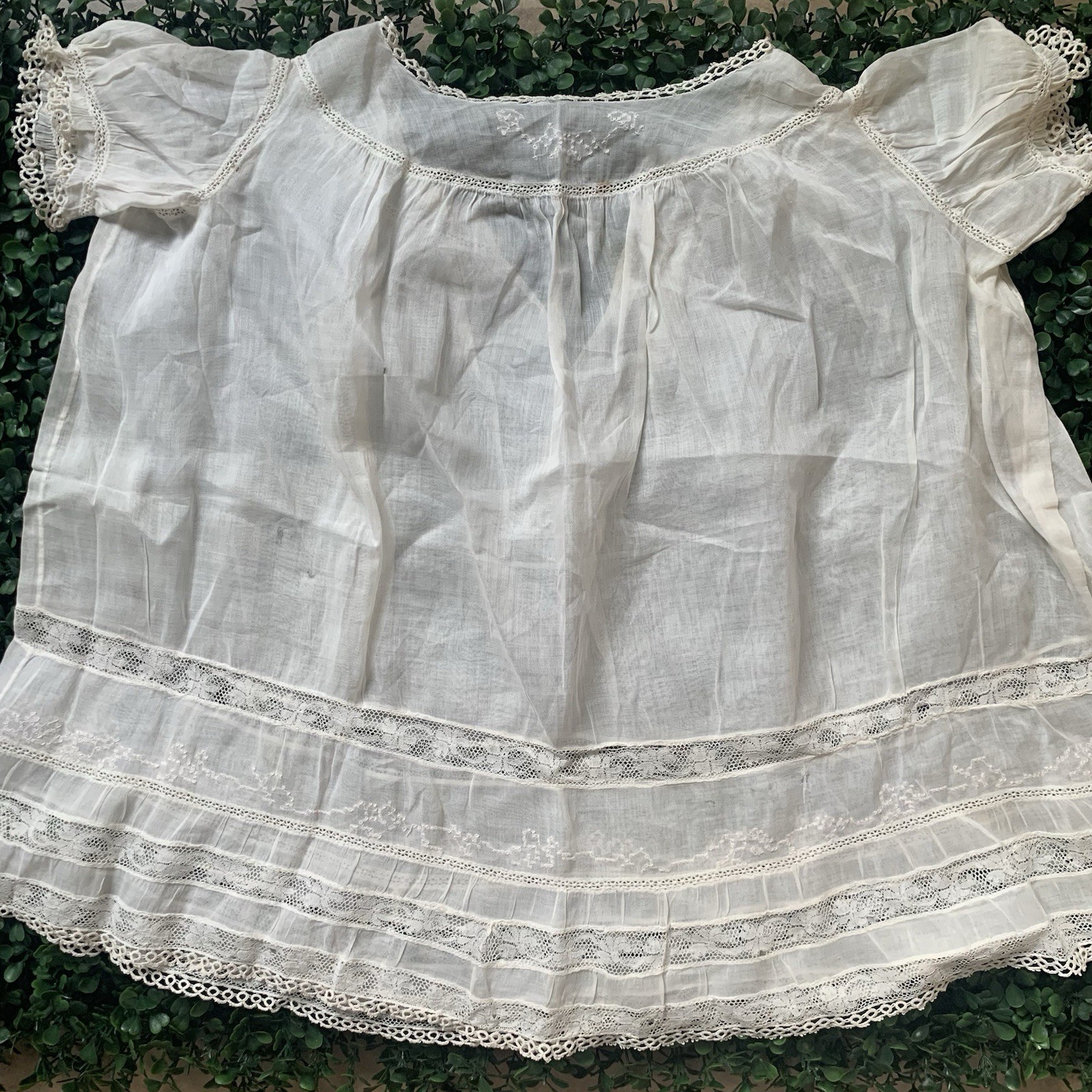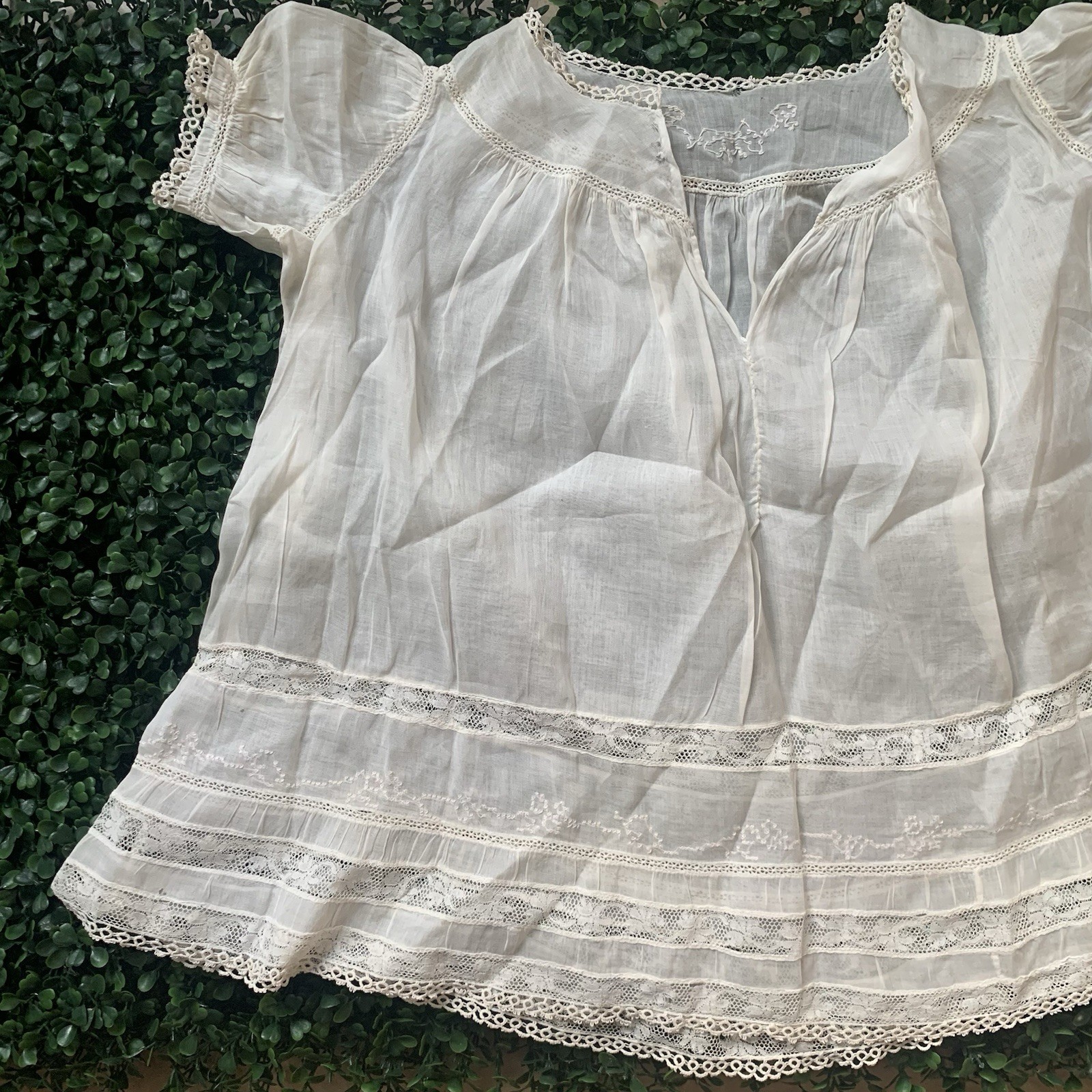 Antique Baby Infant White Cotton Lace Inlay Dress / Nightgown