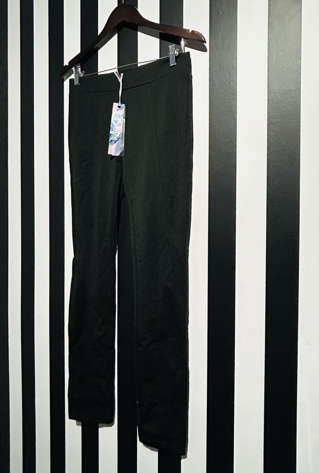 как выглядит Theo Paris black stretch mesh panel legs high waistband Riding leggings L фото