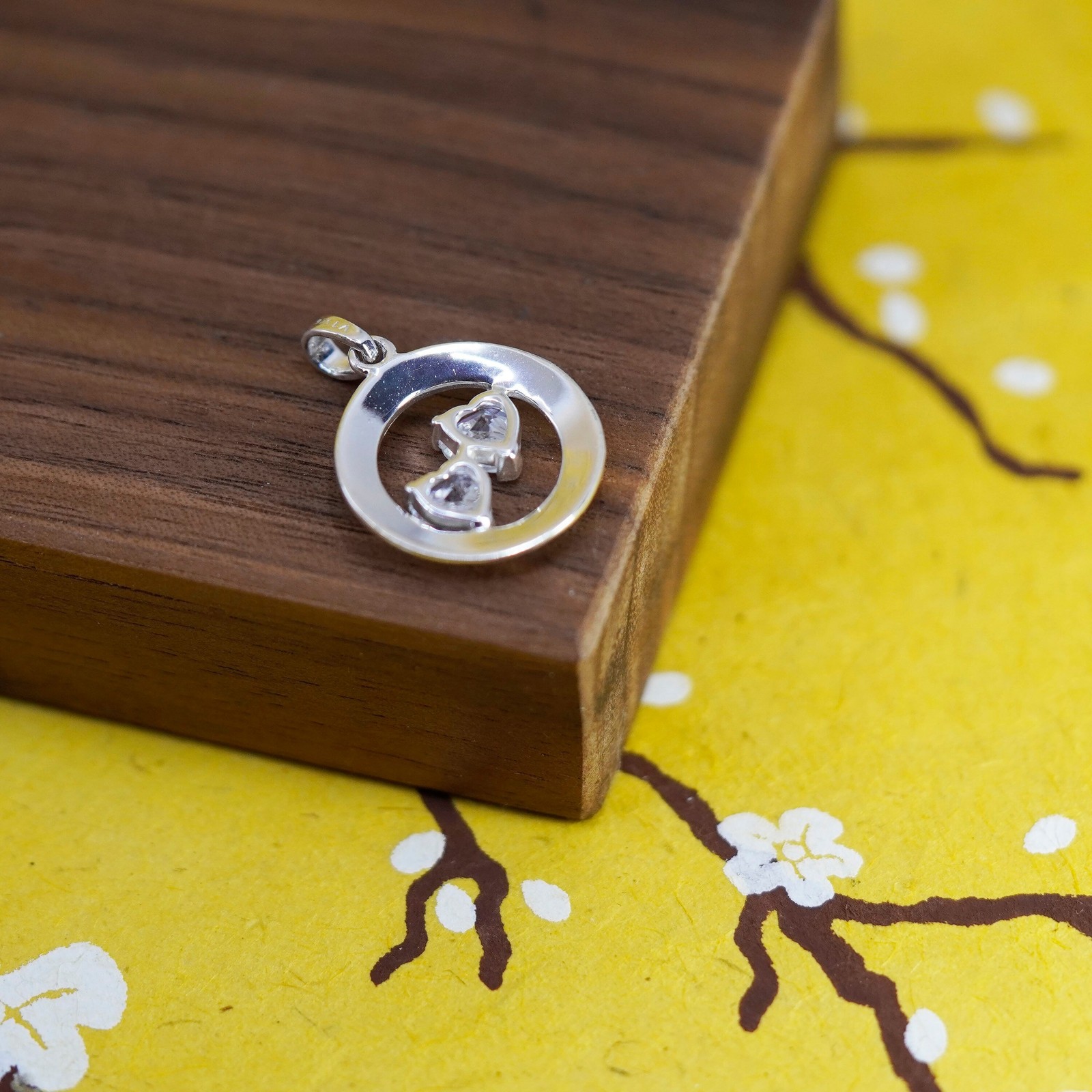 Vintage Sterling 925 silver mother daughter friends pendant with clear heart cz