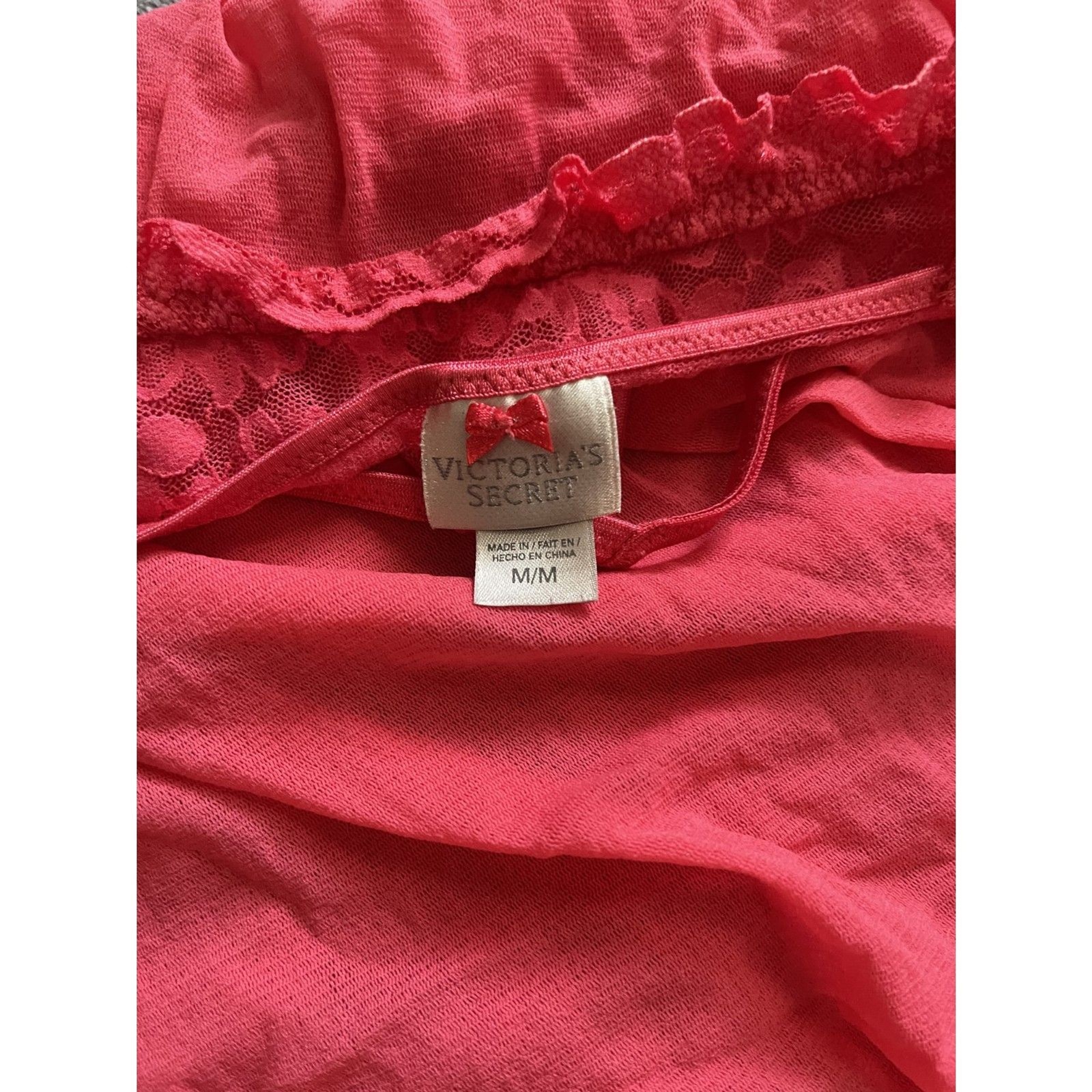 как выглядит Victorias Secret Mesh Pink Babydoll Slip Lingerie with Lace Detailing - Size M фото