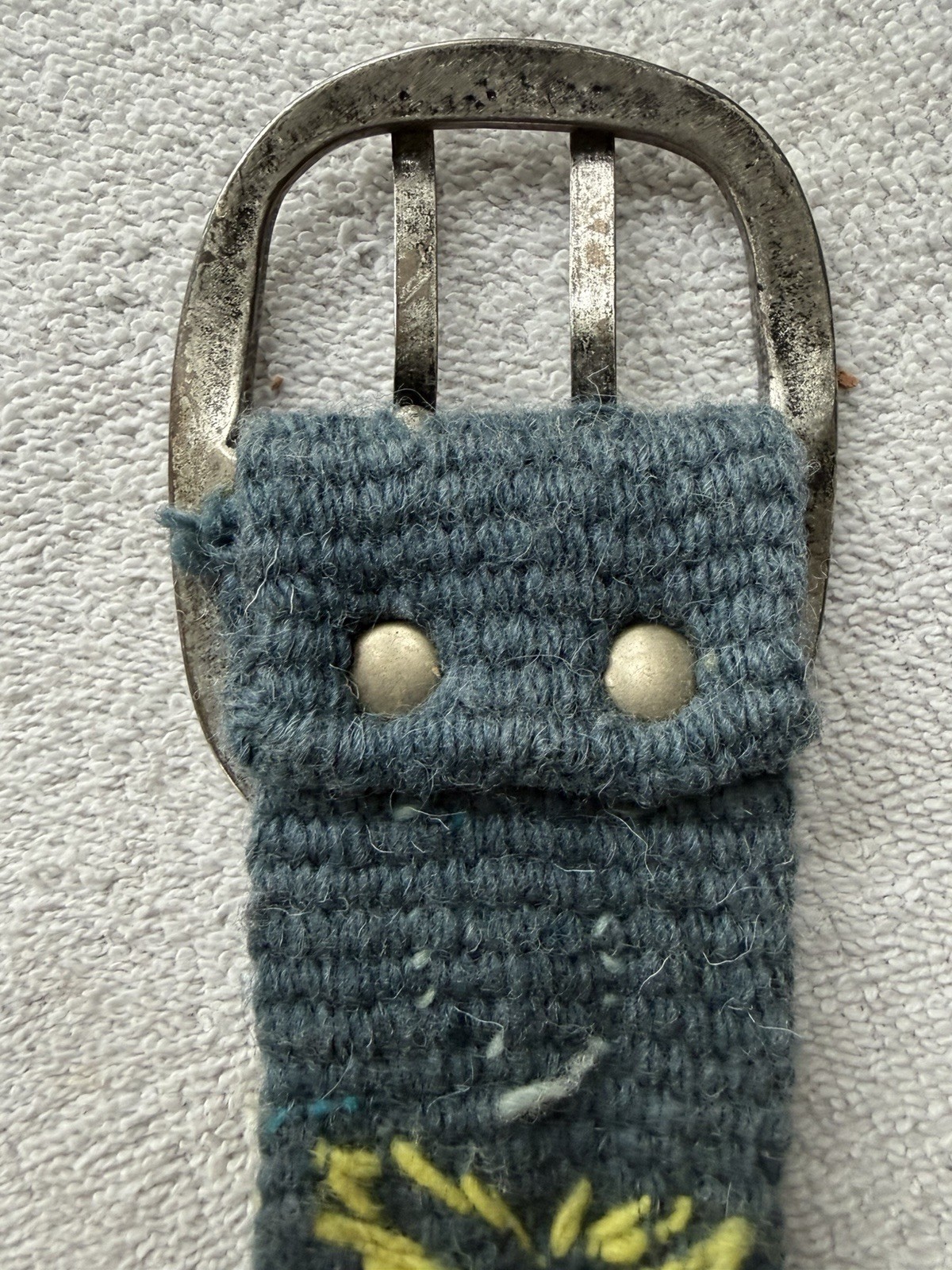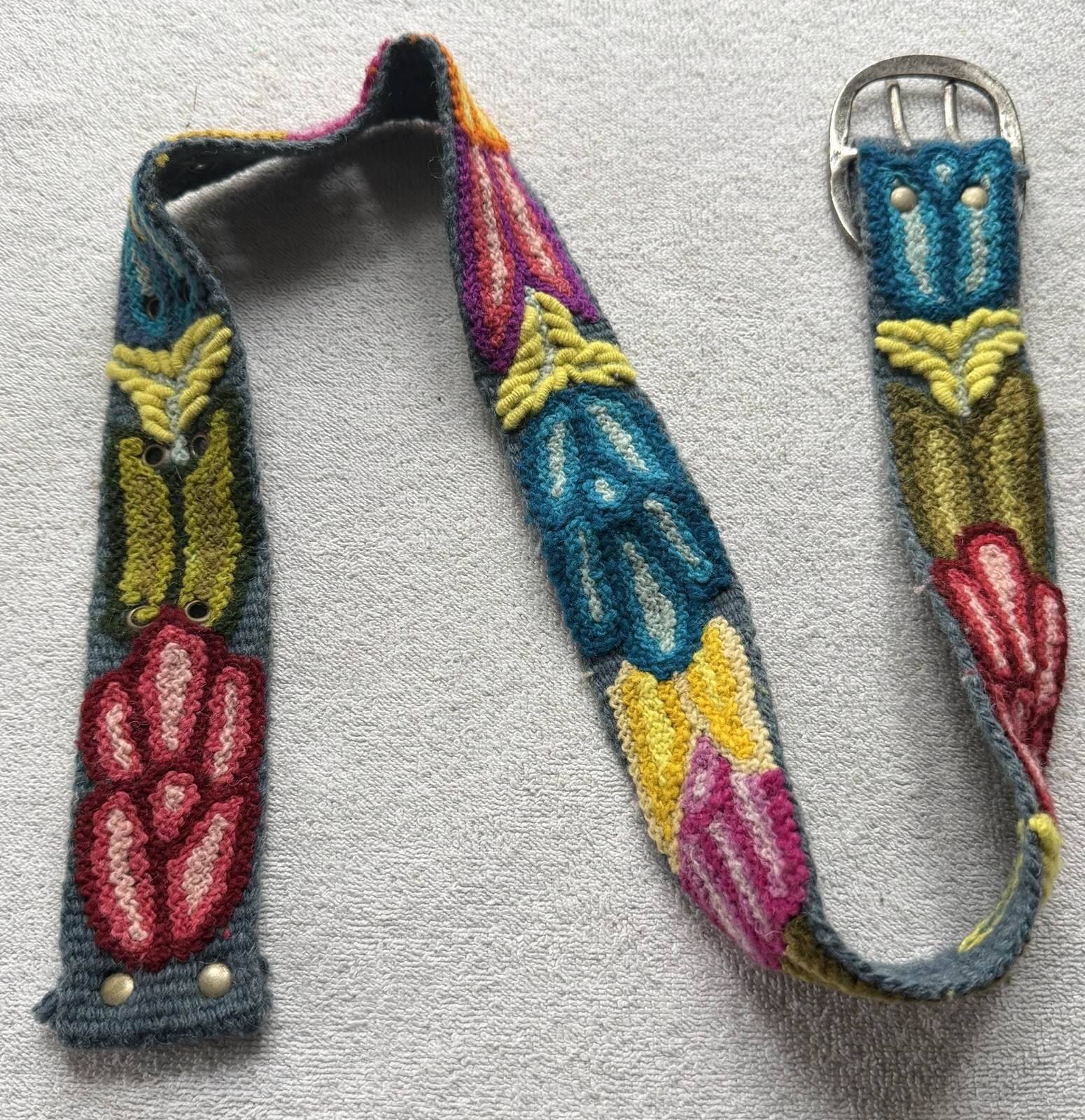 как выглядит Jenny Krauss Embroidered Wool Handmade Belt Boho Peru Small Blue Floral Flower фото