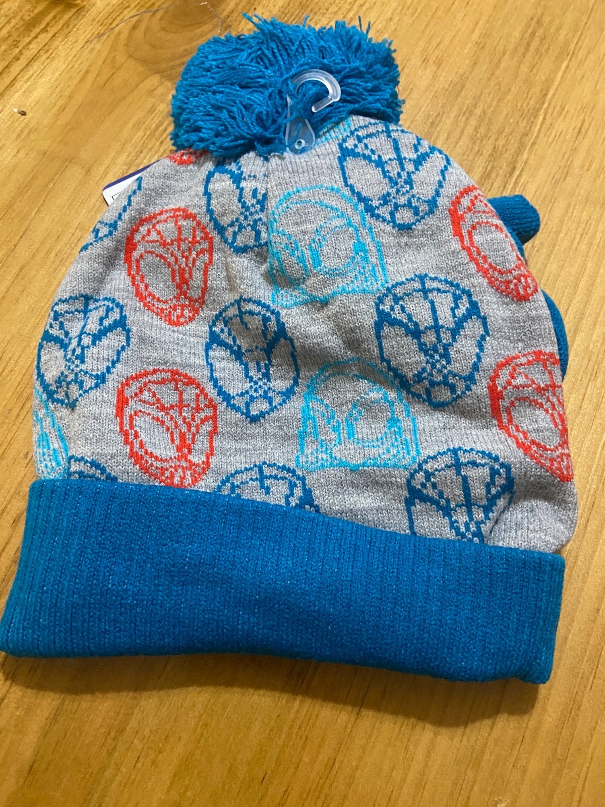 как выглядит Marvel Spiderman 2pc Youth Kids Beanie Winter Hat mitten Set New фото