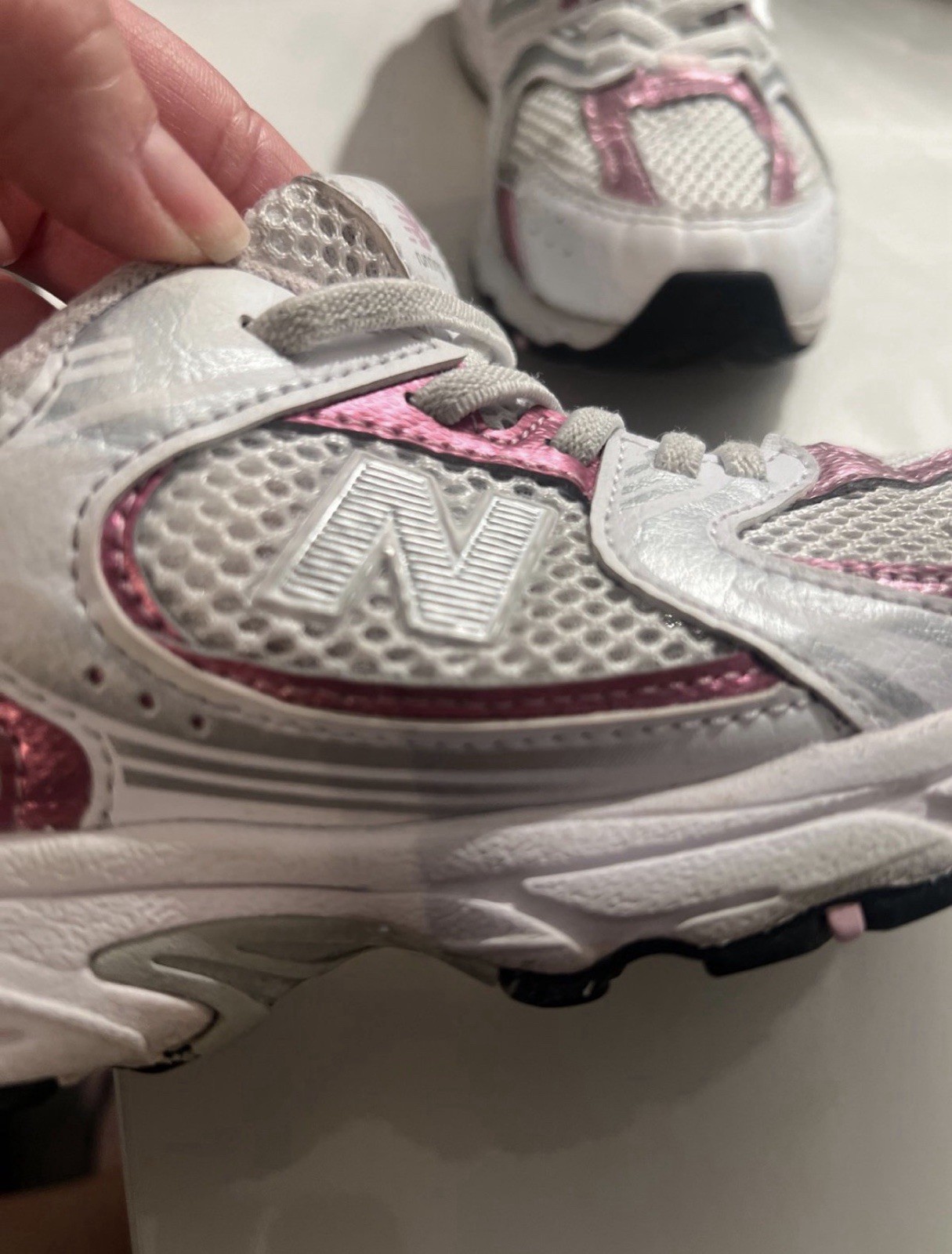 как выглядит New Balance 530 Bungee IZ530RK Girls Running Sneaker White/Pink фото
