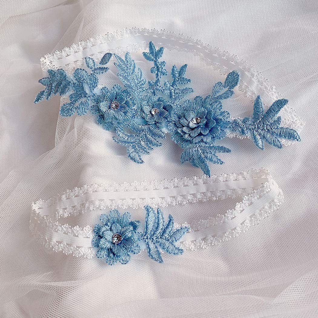 Wedding Garters for Bride Lace Bridal Garter Belt Set with Floral Stretchy Bl...