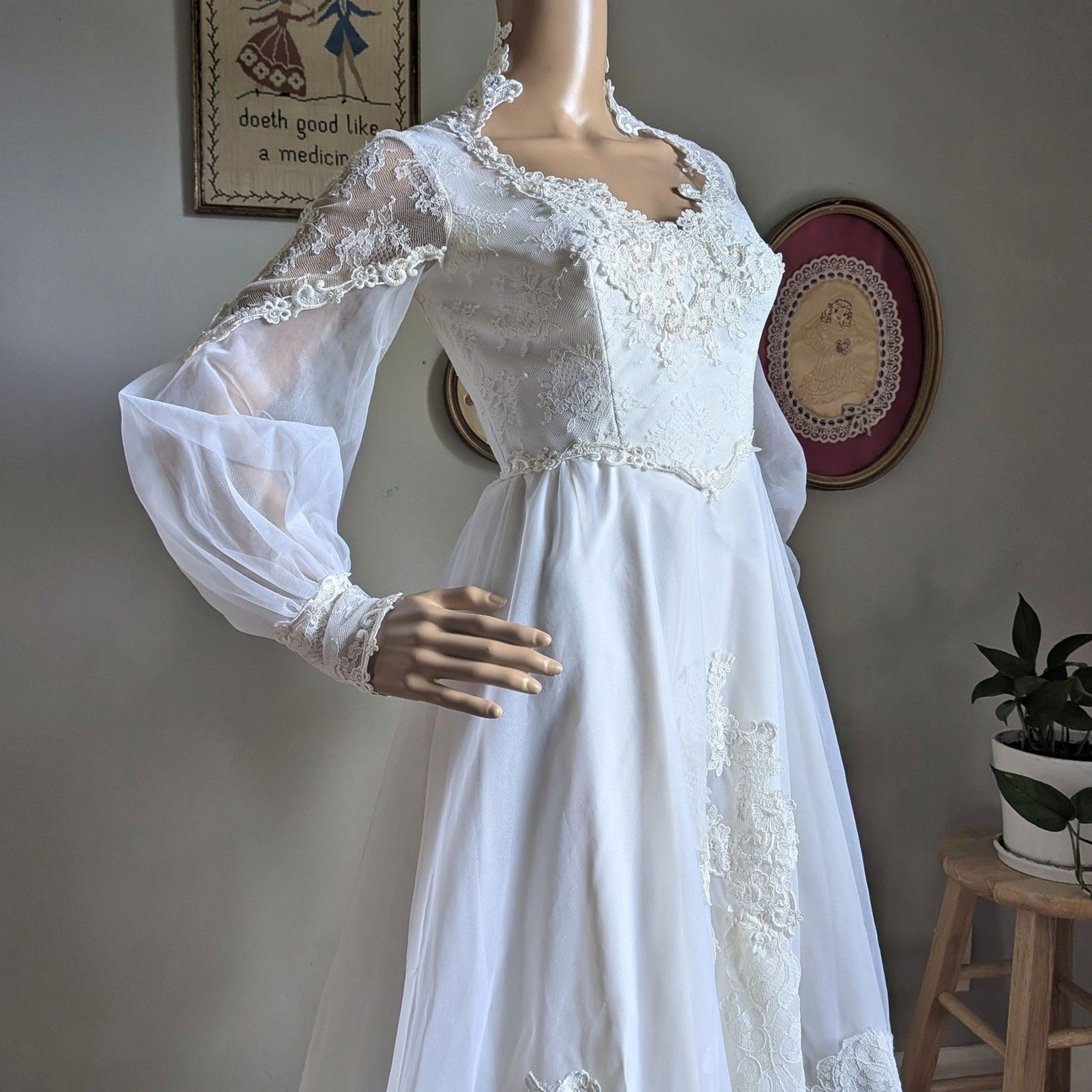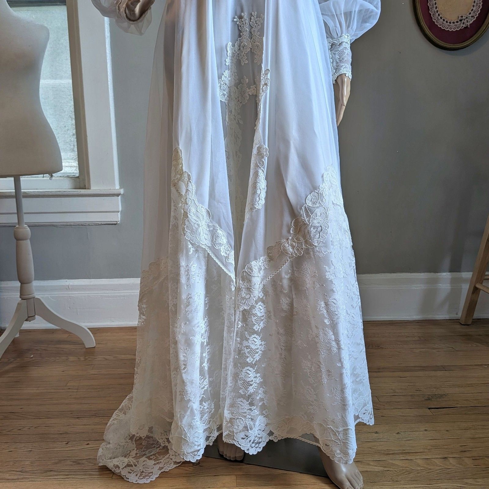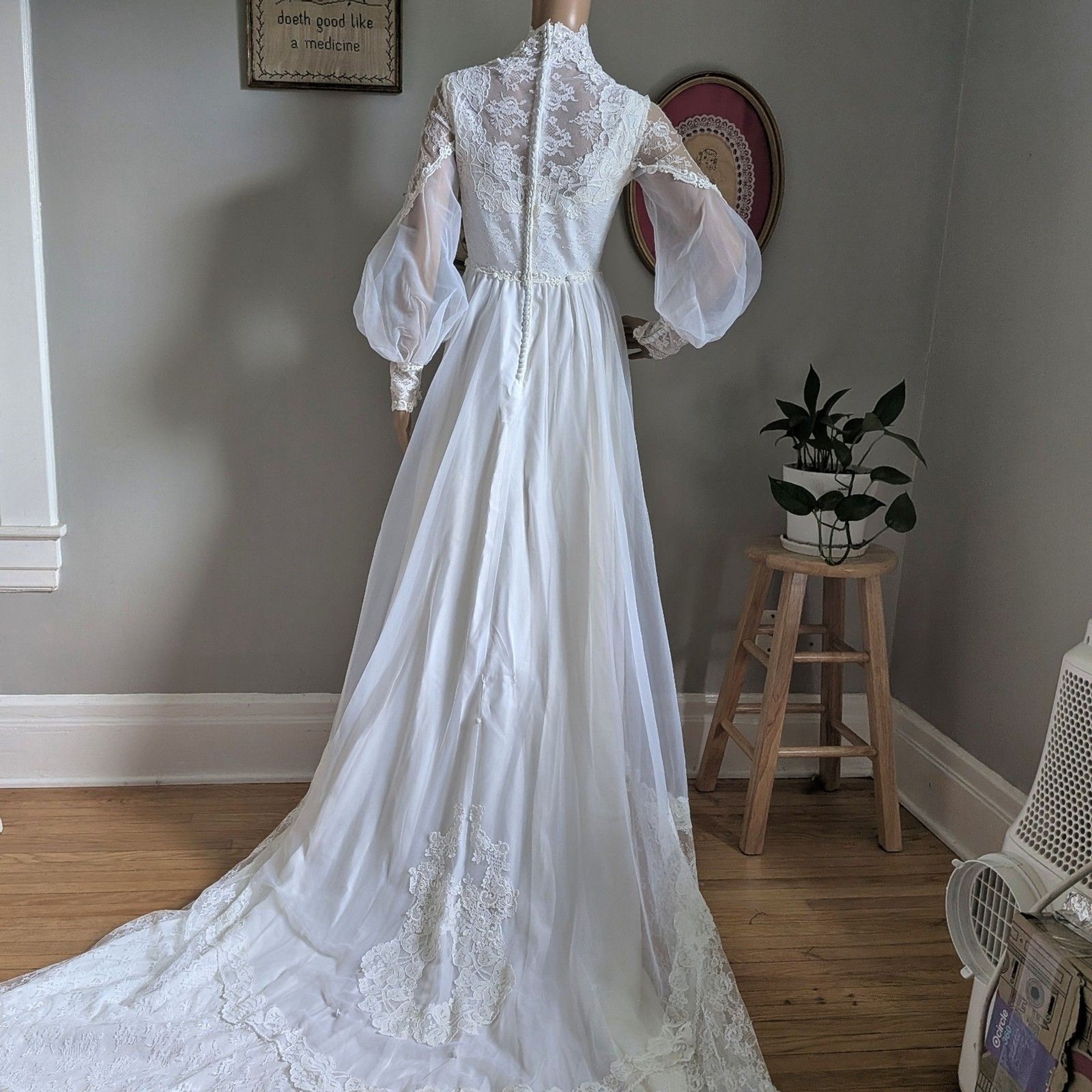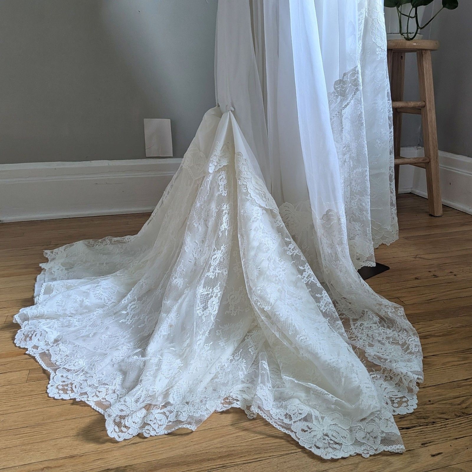 как выглядит Vintage 1970s Bridallure Wedding Dress Floral Lace Gown Train Bridal Maxi Size 4 фото
