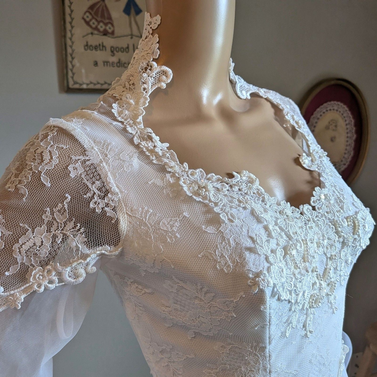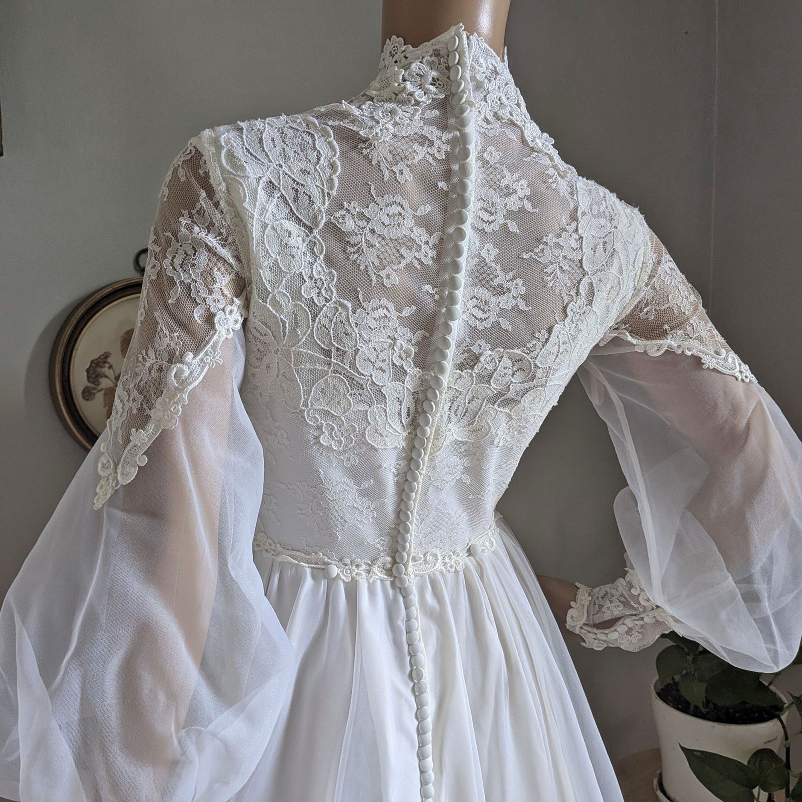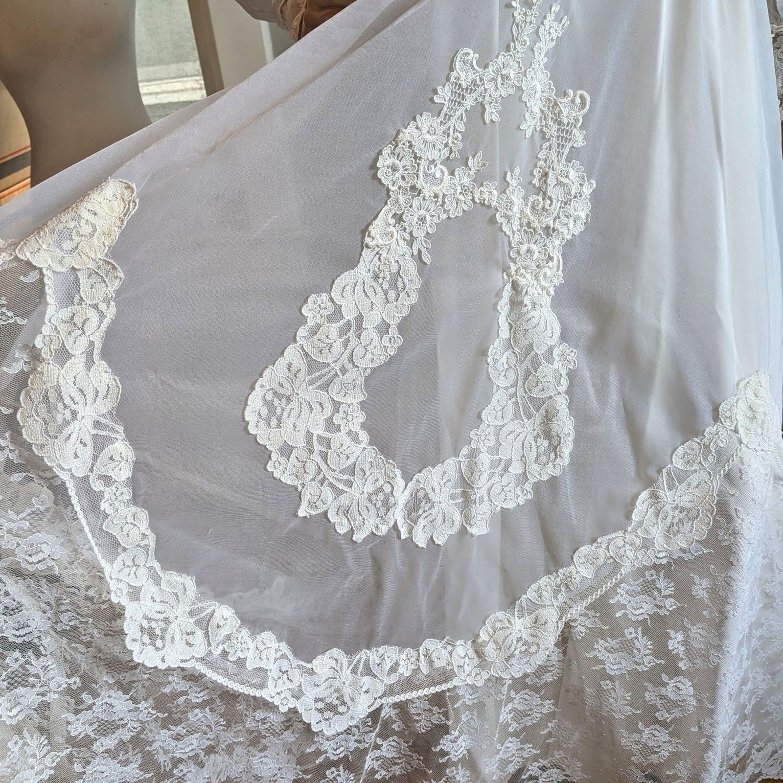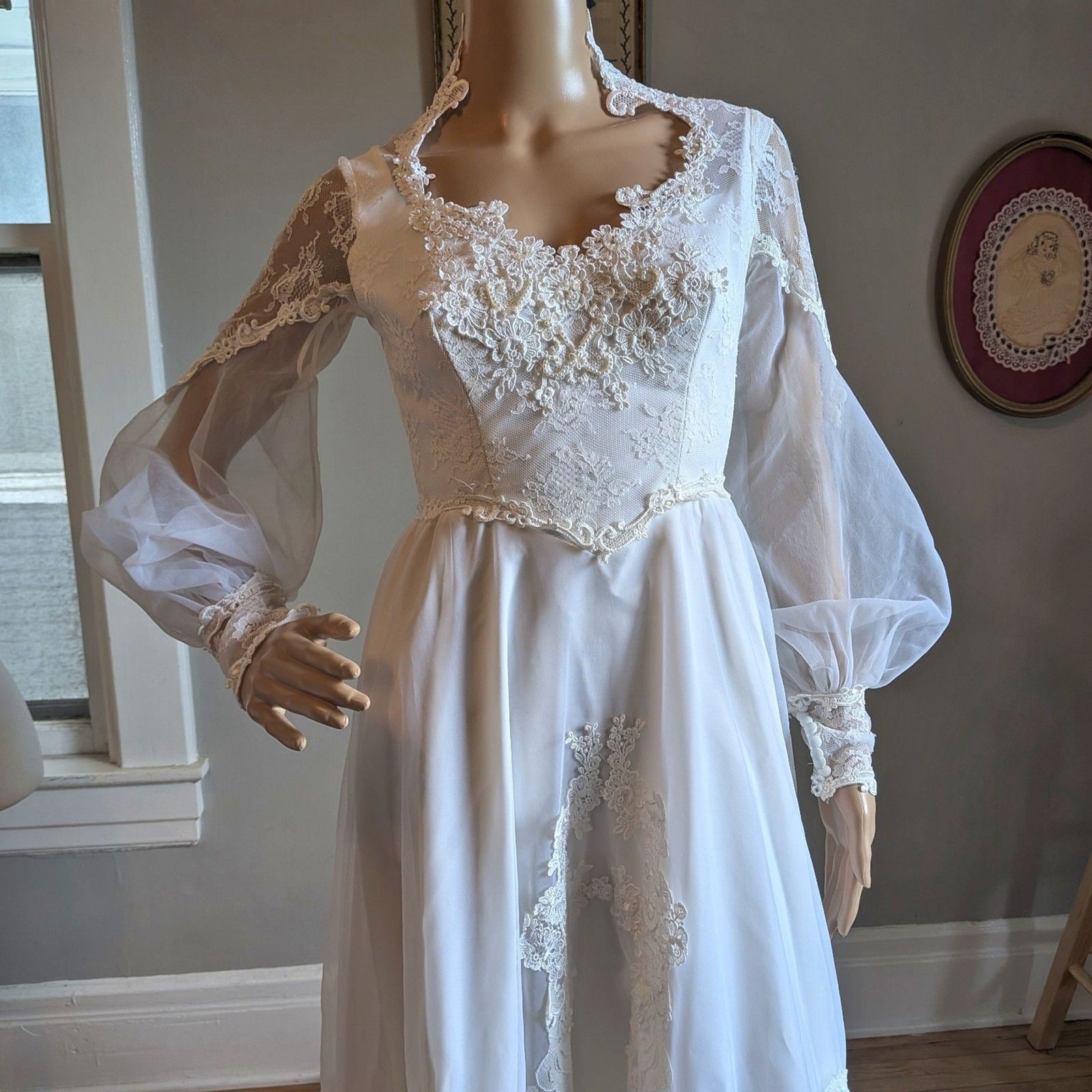 как выглядит Vintage 1970s Bridallure Wedding Dress Floral Lace Gown Train Bridal Maxi Size 4 фото