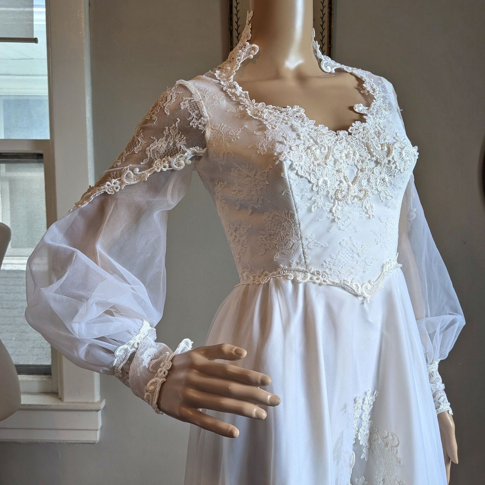 Vintage 1970s Bridallure Wedding Dress Floral Lace Gown Train Bridal Maxi Size 4