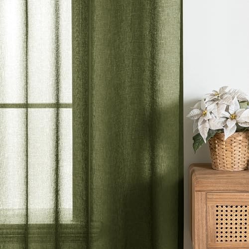 2 Panels Semi Sheer Window Curtains 54W x 84L Pack of 2 Olive Green