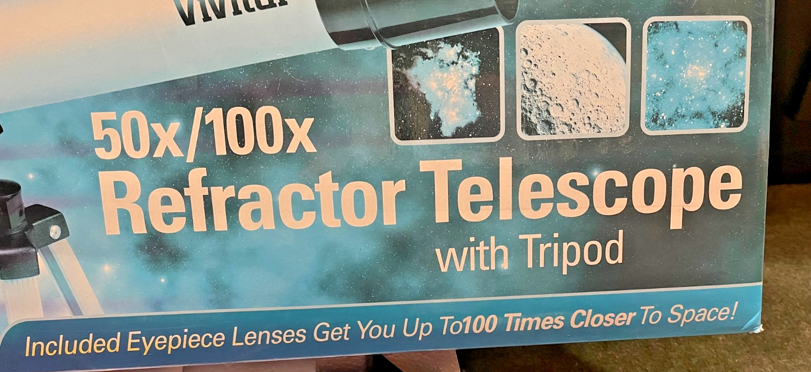 Vivitar 50x/100x Refractor Telescope With Tripod - Lens Cap 50x 100x Lens - New