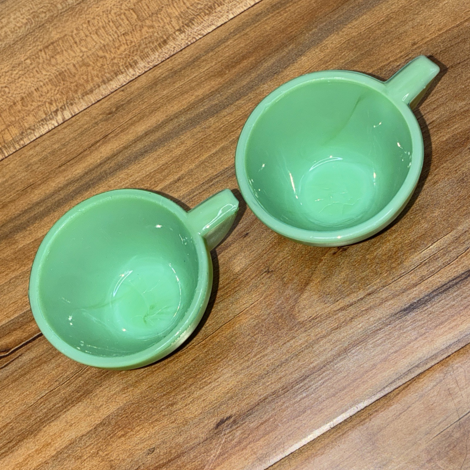 Lot of 2 Vintage Akro Agate Green Jadeite Childs Tea Cup
