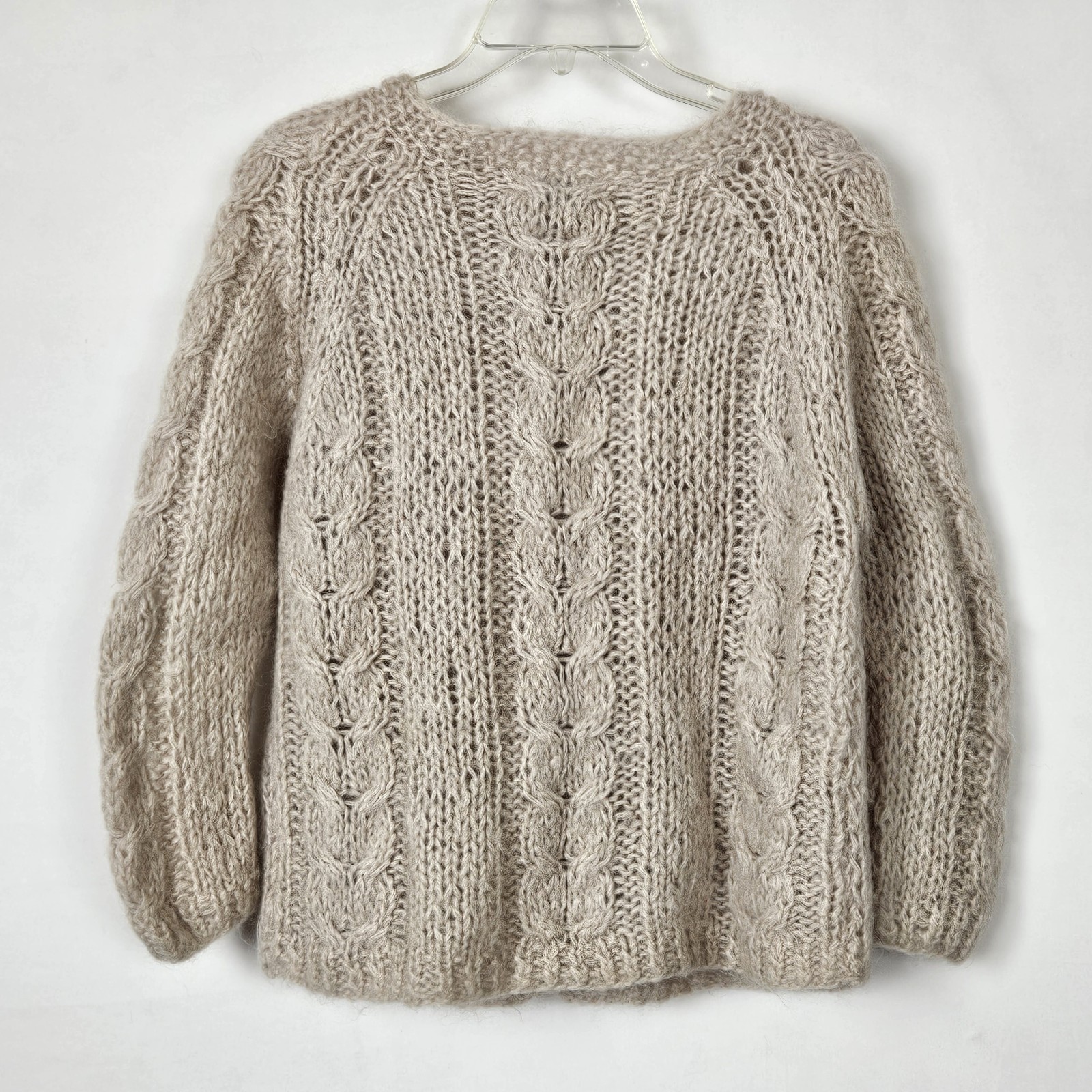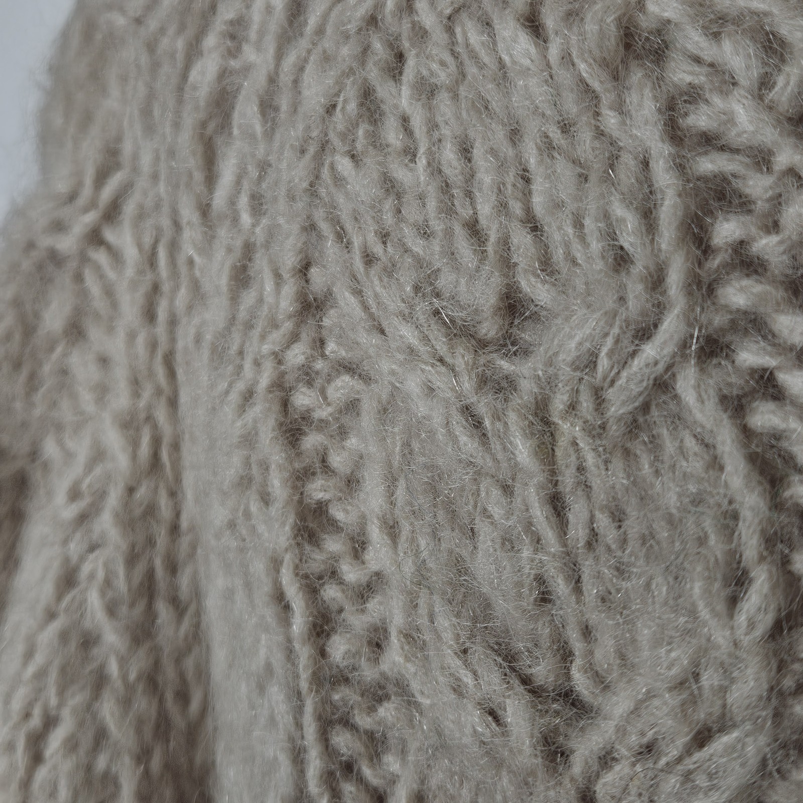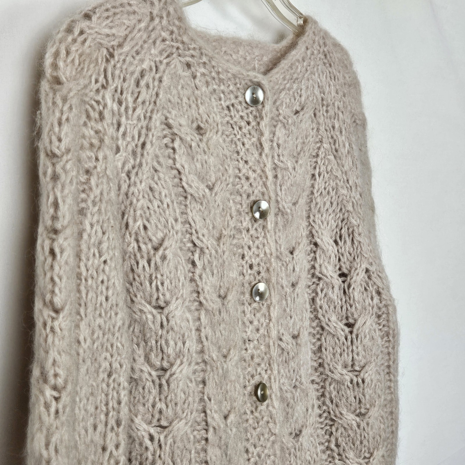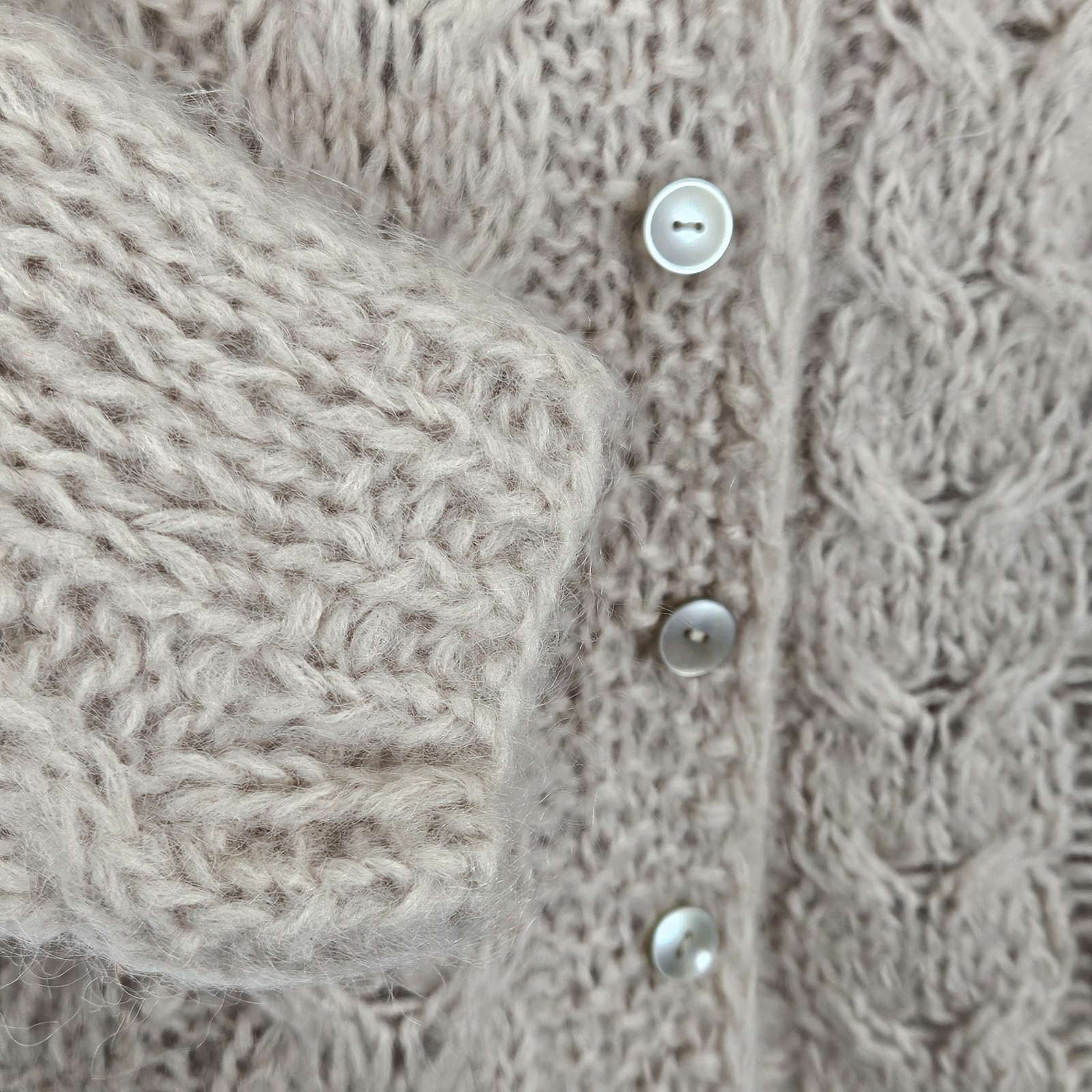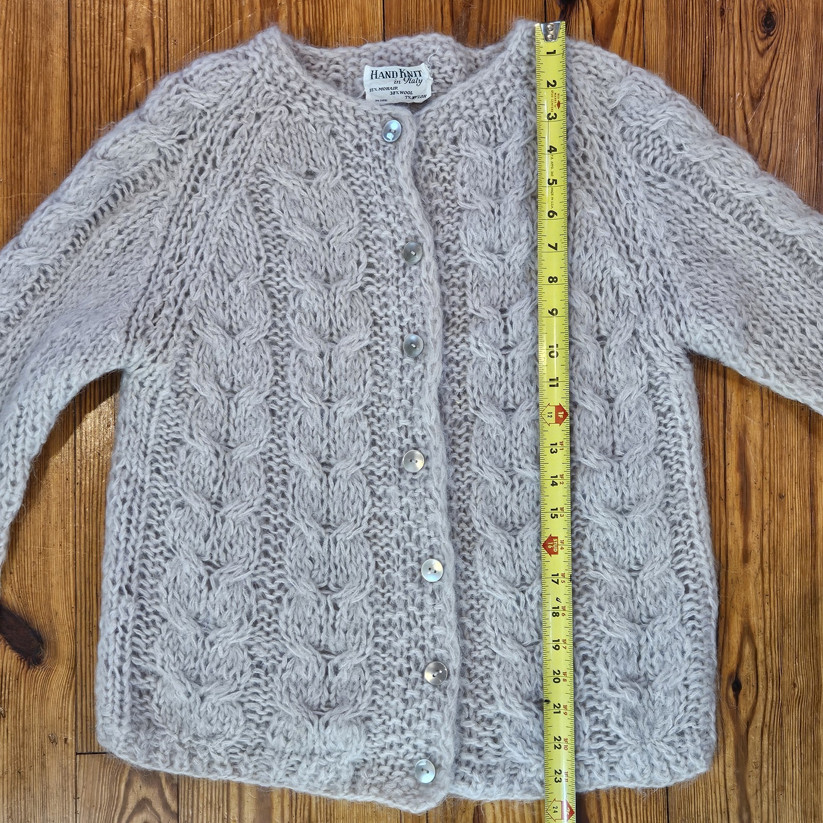 Vintage Hand Knit In Italy Mohair Wool Button Up Cable-Knit Cardigan Sweater