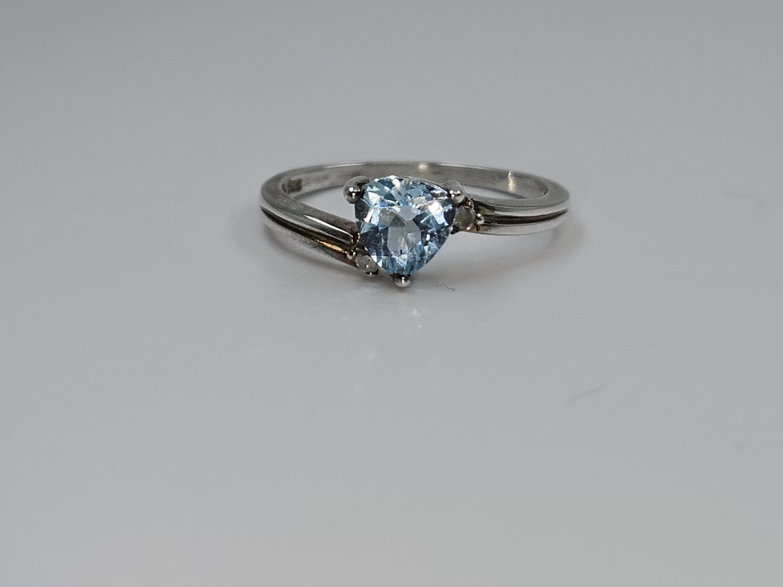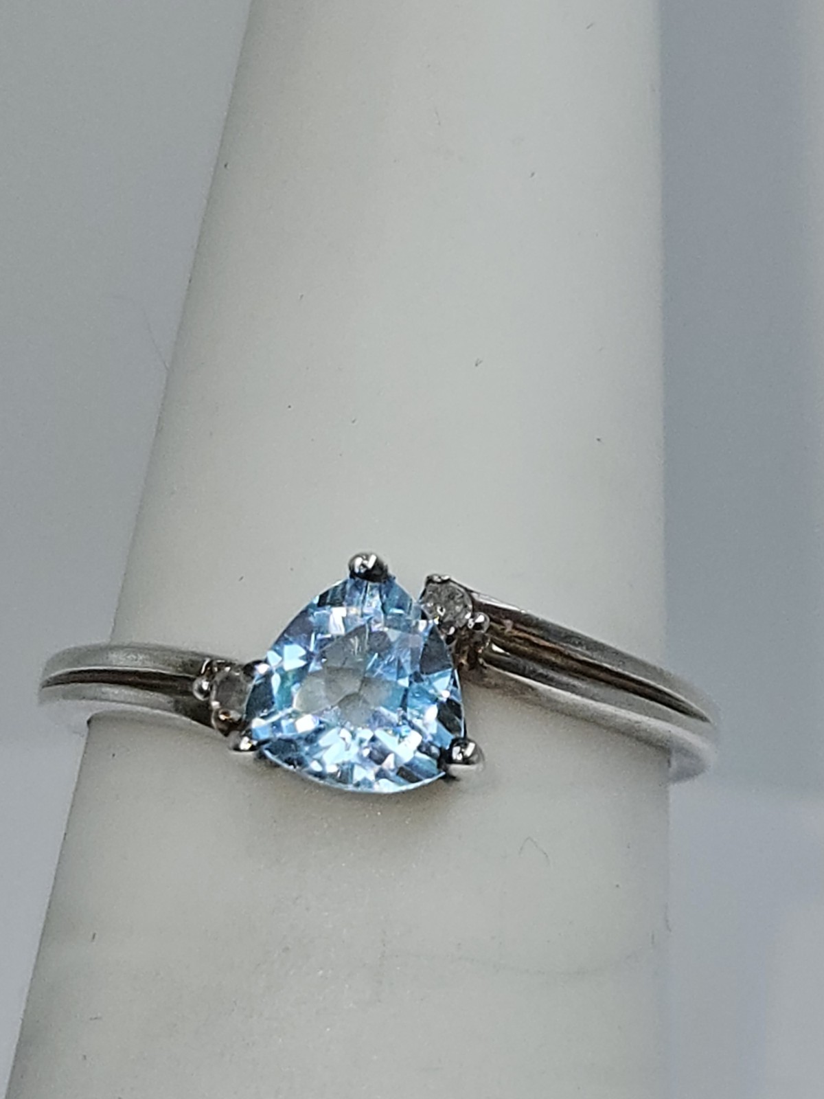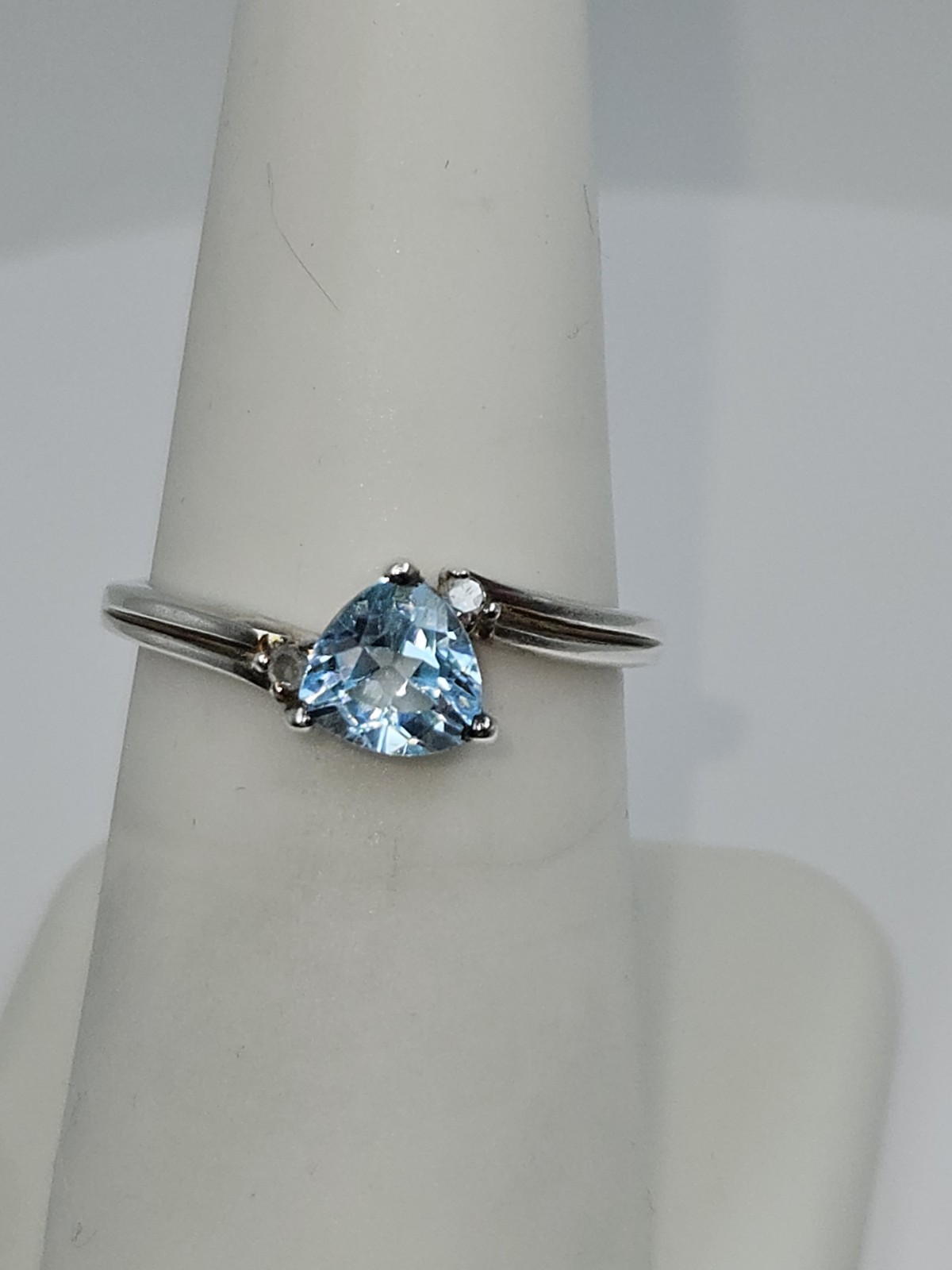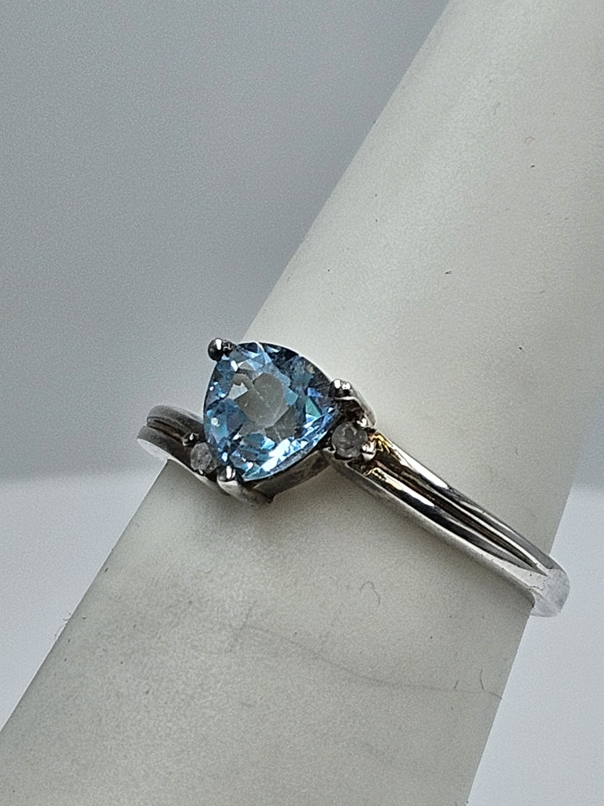 Size 7 Sterling Silver Blue Topaz Ring with Accents December Birthstone