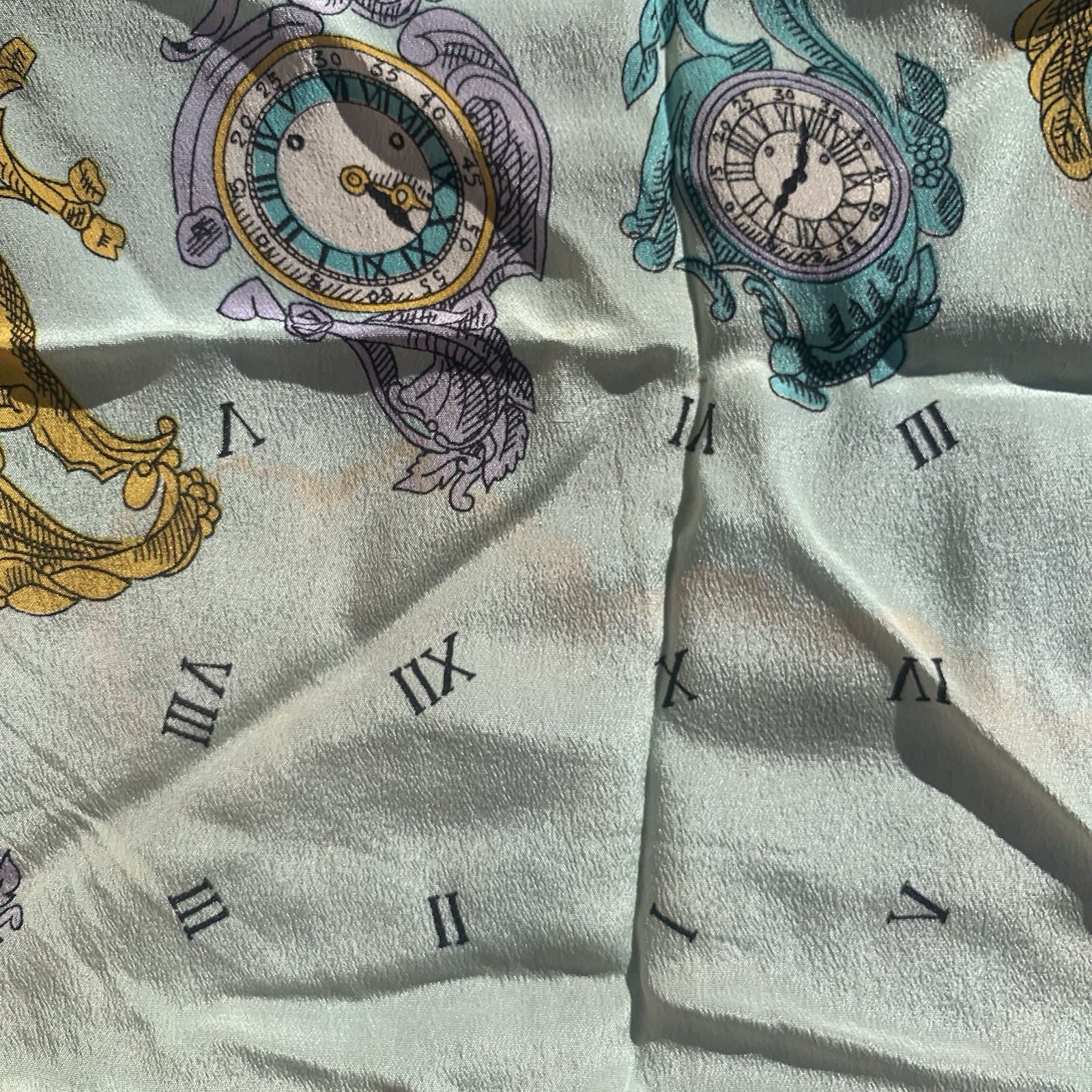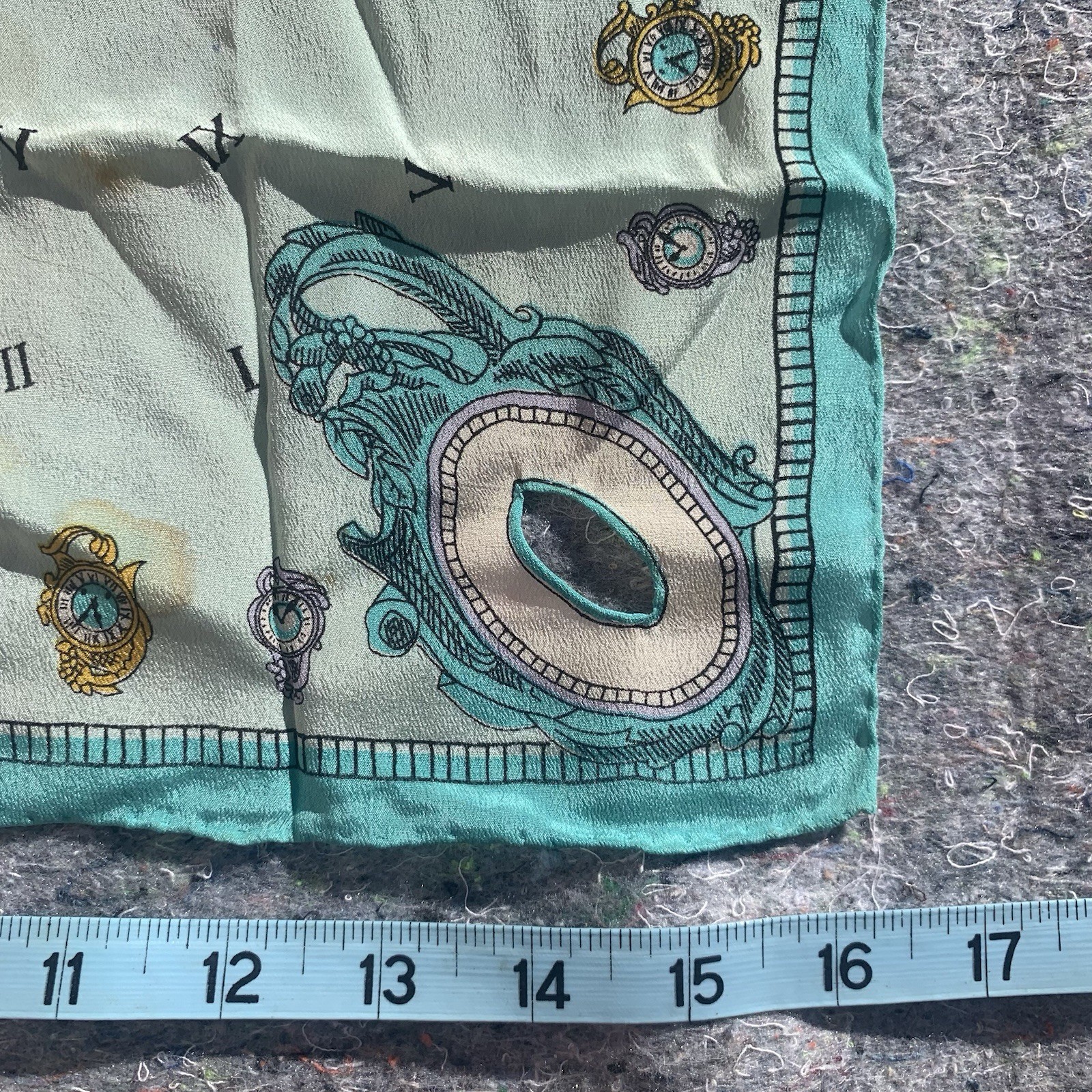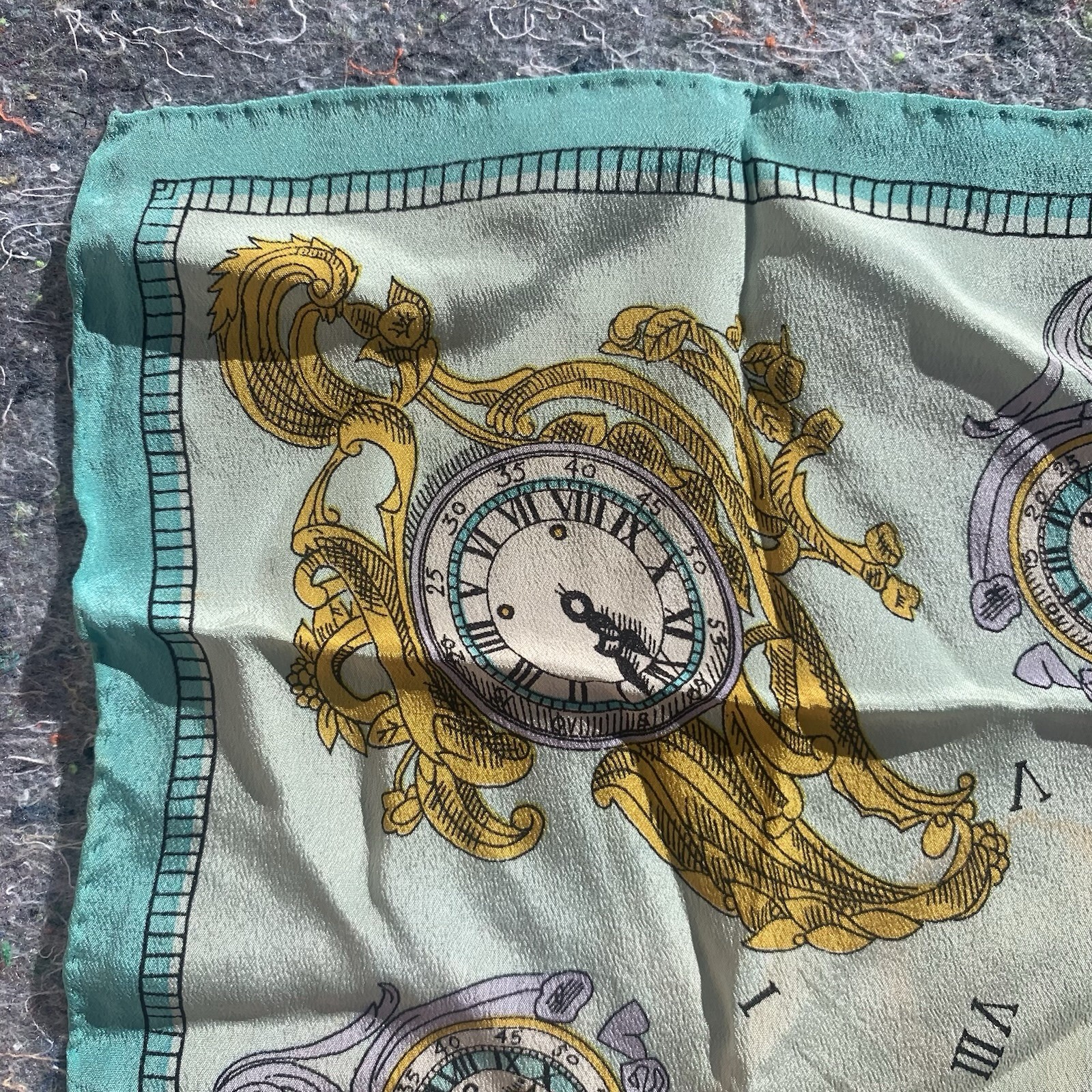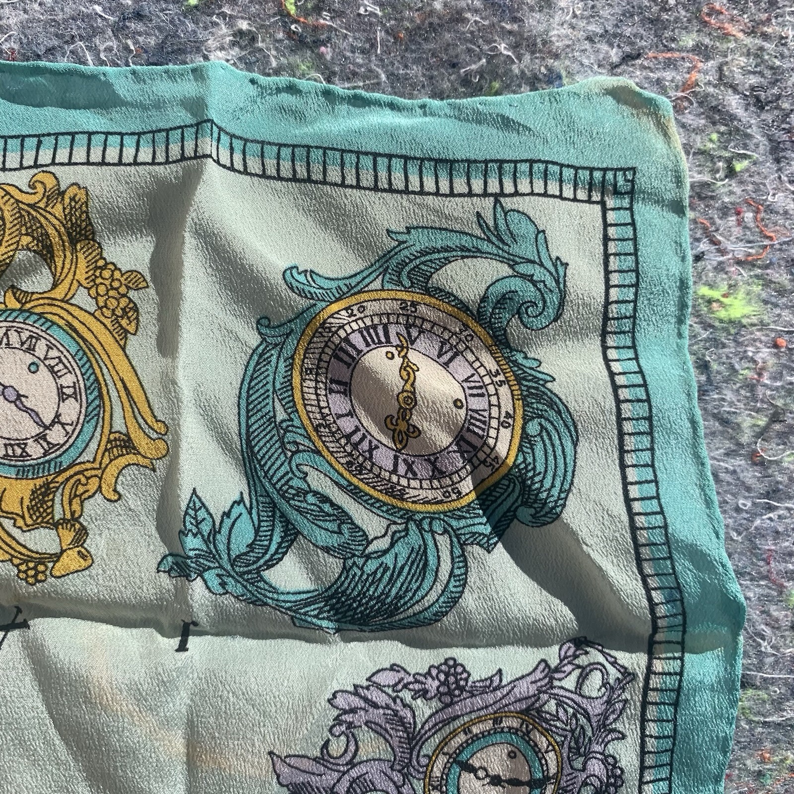 как выглядит Vintage 60s Elegant Clocks Novelty Print Small Scarf фото