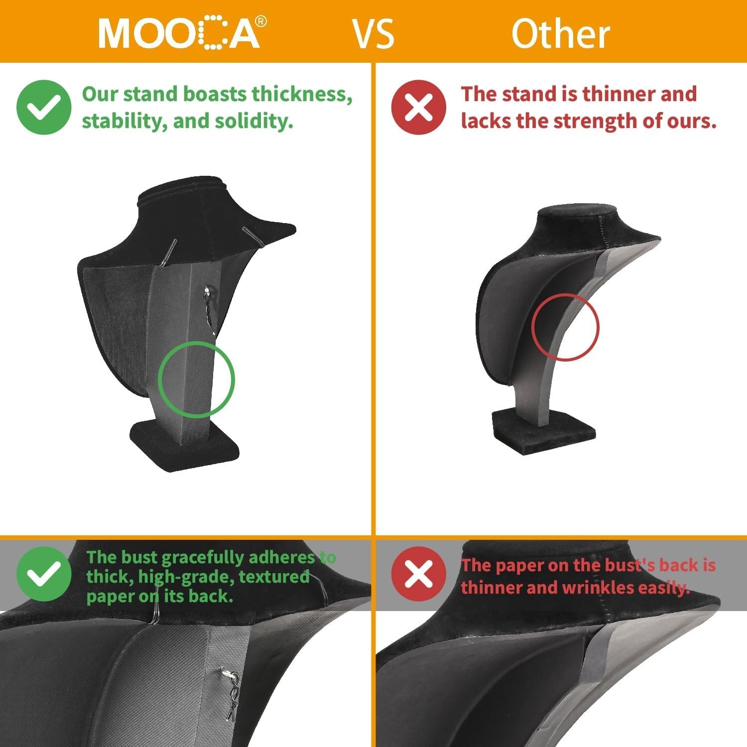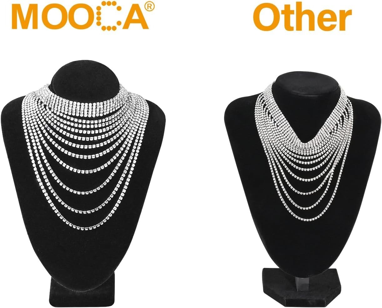 Classic Jewelry Bust Display Set - Adjustable Black Velvet Necklace Holders