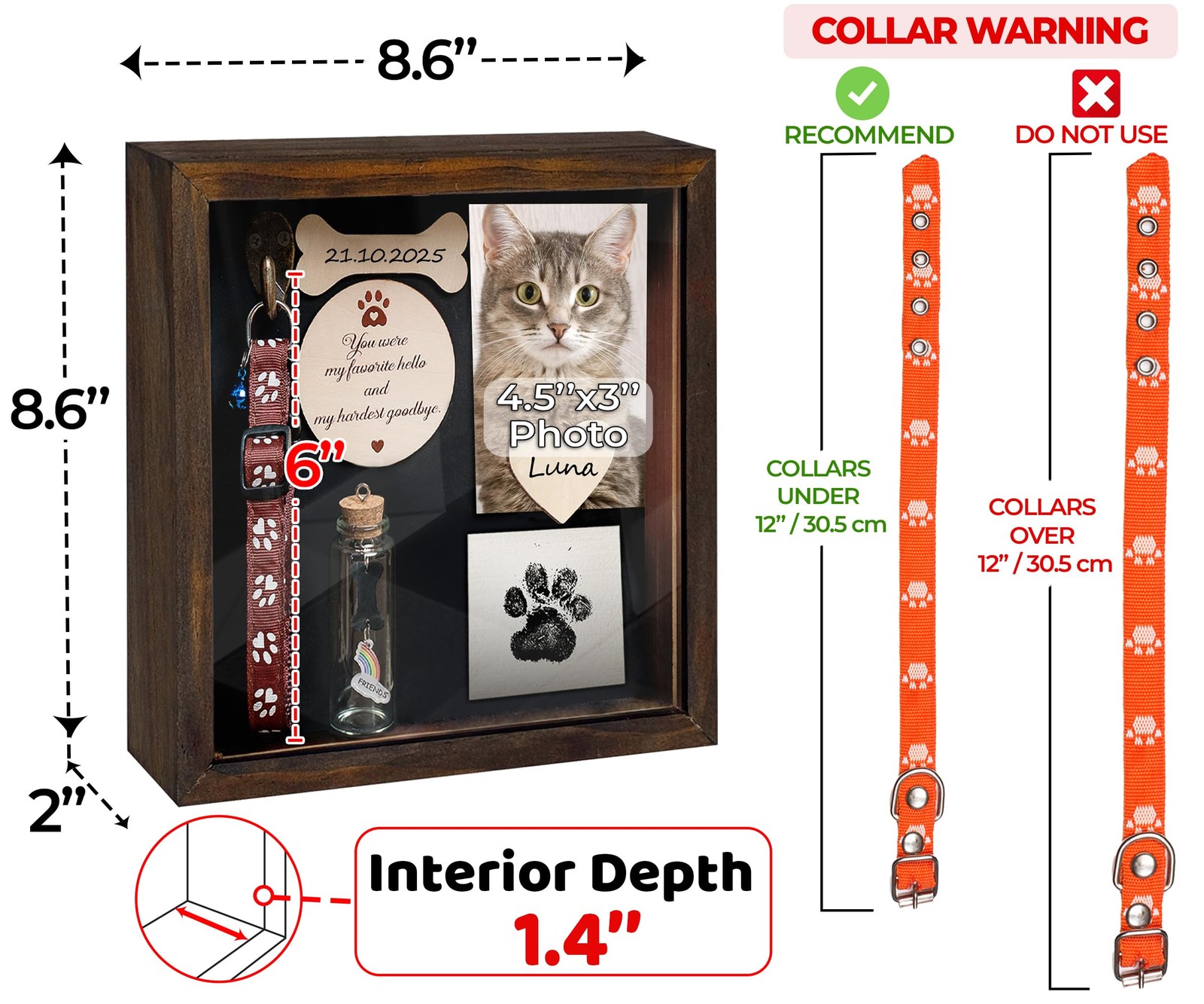 8.6'' Pet Memorial Shadow Box, Rustic Collar Holder Picture Frame, Paw Print ...