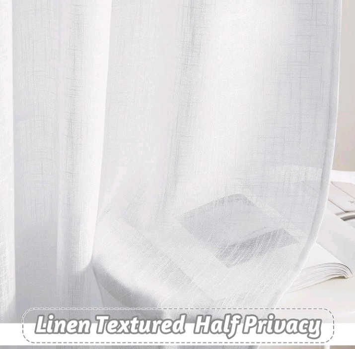 как выглядит White Curtains Sheer - Linen Texture Sheer Window Covering, Light Airy Tran.33 фото