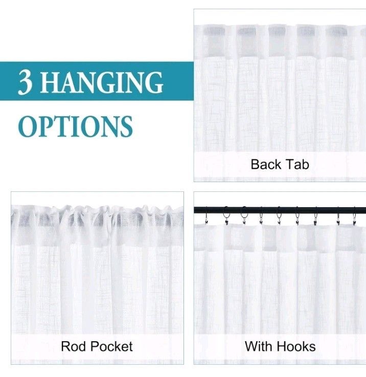 White Curtains Sheer - Linen Texture Sheer Window Covering, Light Airy Tran.33