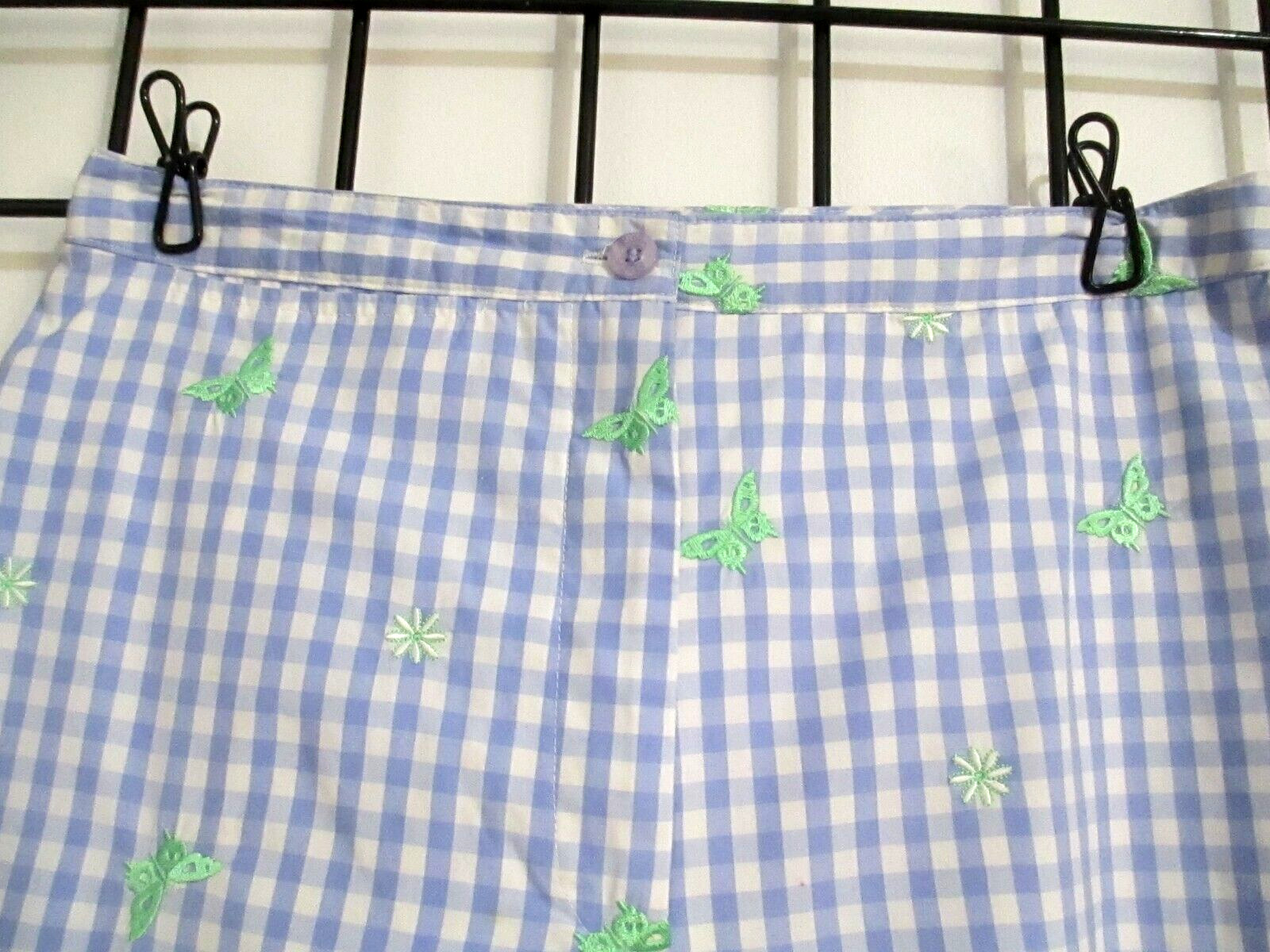 как выглядит LILLY PULITZER WHITE LABEL  SIZE 2 BLUE GINGHAM BUTTERFLY CAPRI PANTS фото