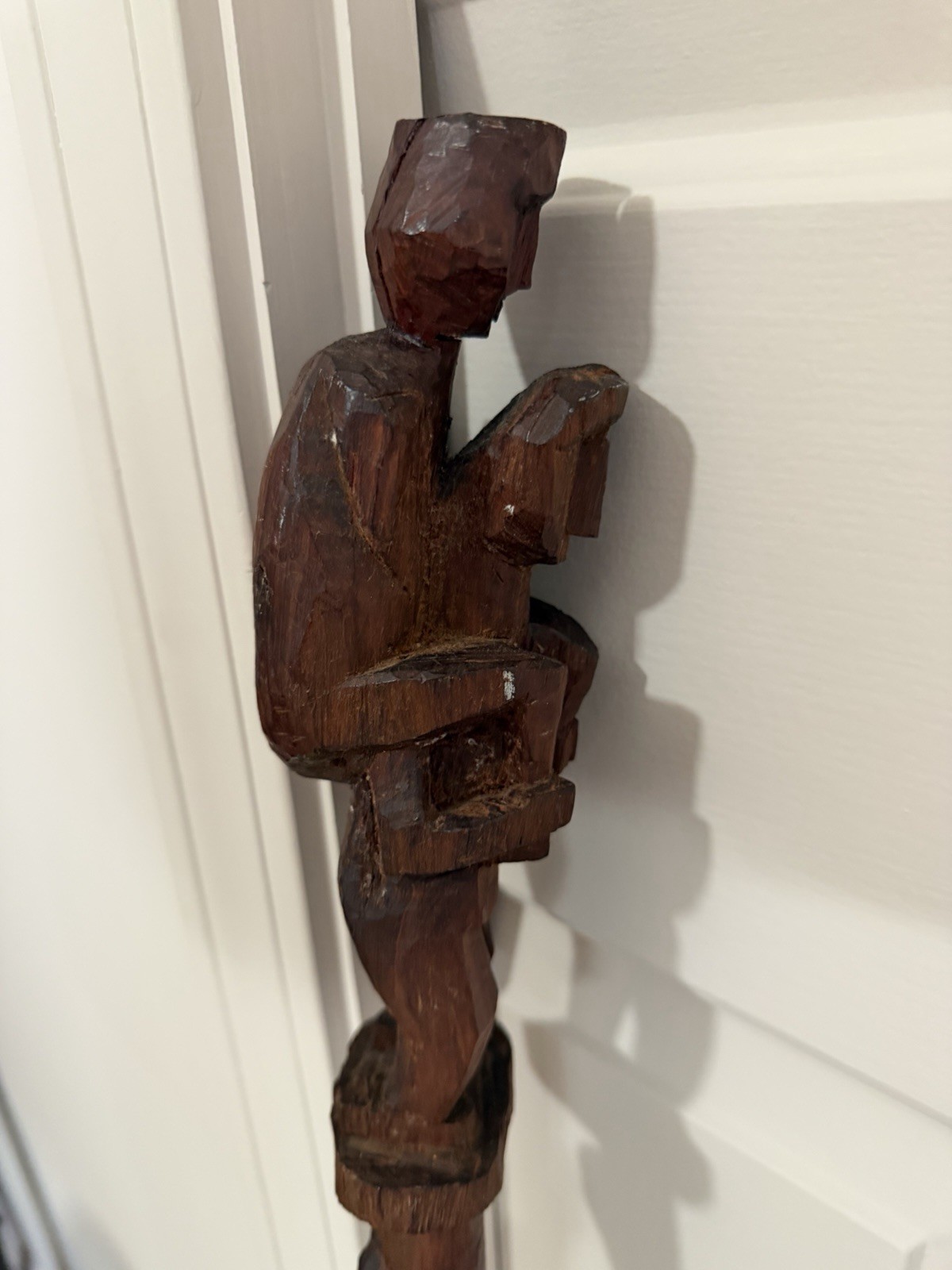как выглядит Hand Carved Walking Stick Tribal Figure Snake Rustic Vintage Folk Art Cane фото