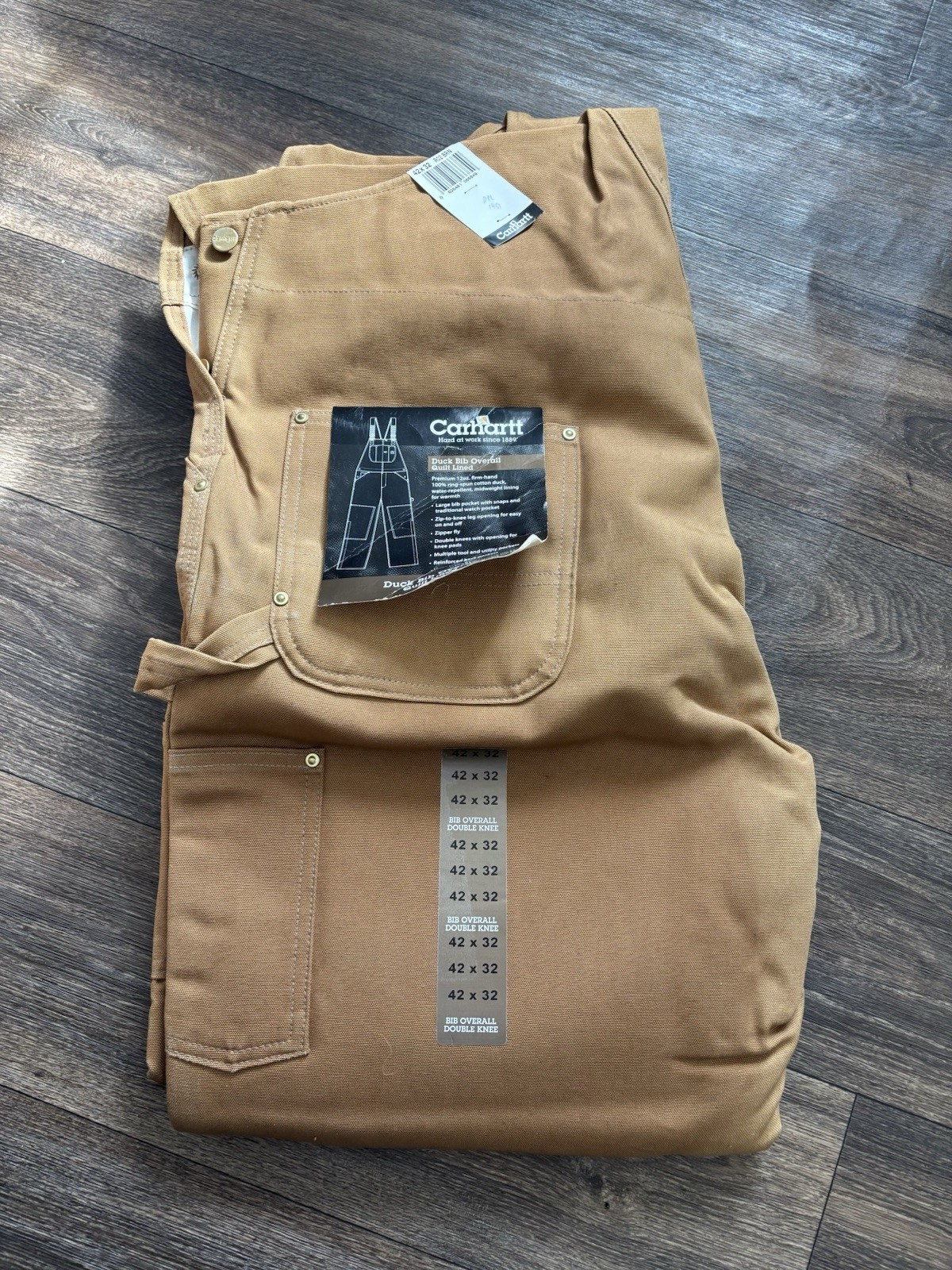 как выглядит VTG CARHARTT USA Made Brown Duck Mens 42x32 Lined Double Knee Bib Overalls фото