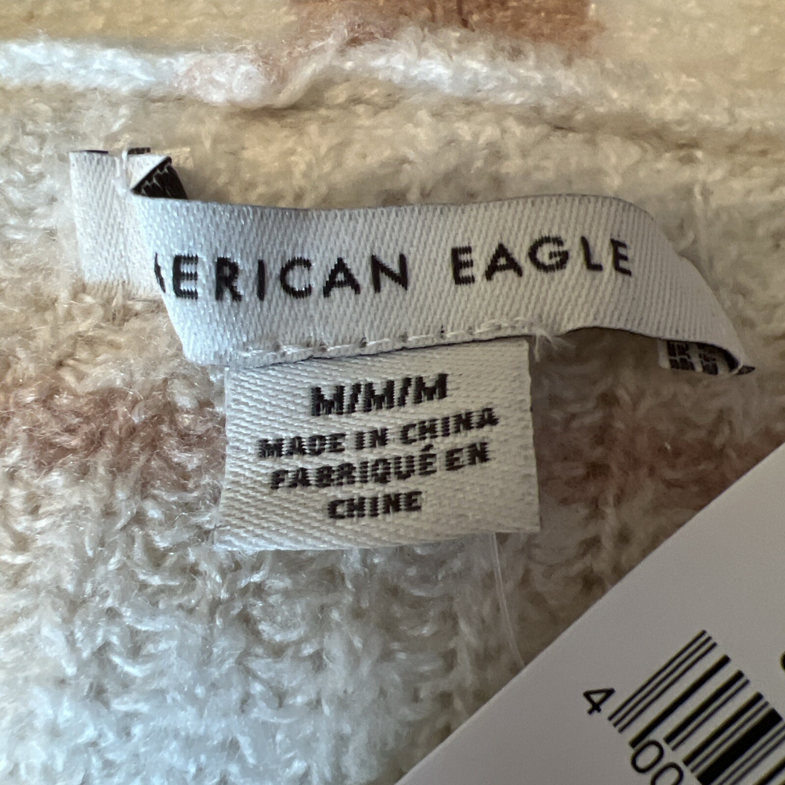American Eagle Cardigan Sweater With Buttons Striped Knit Ivory Beige Medium