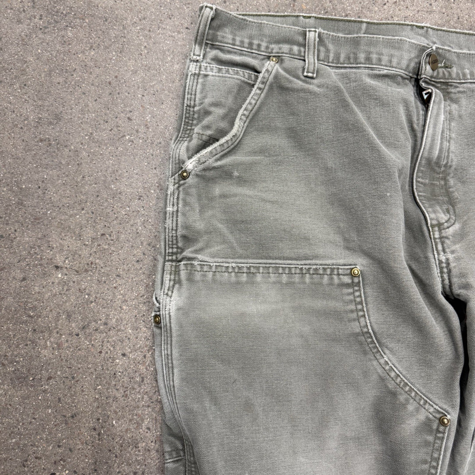 Vintage Y2K Carhartt MOS green double knee work wear carpenter pants Size 38x32