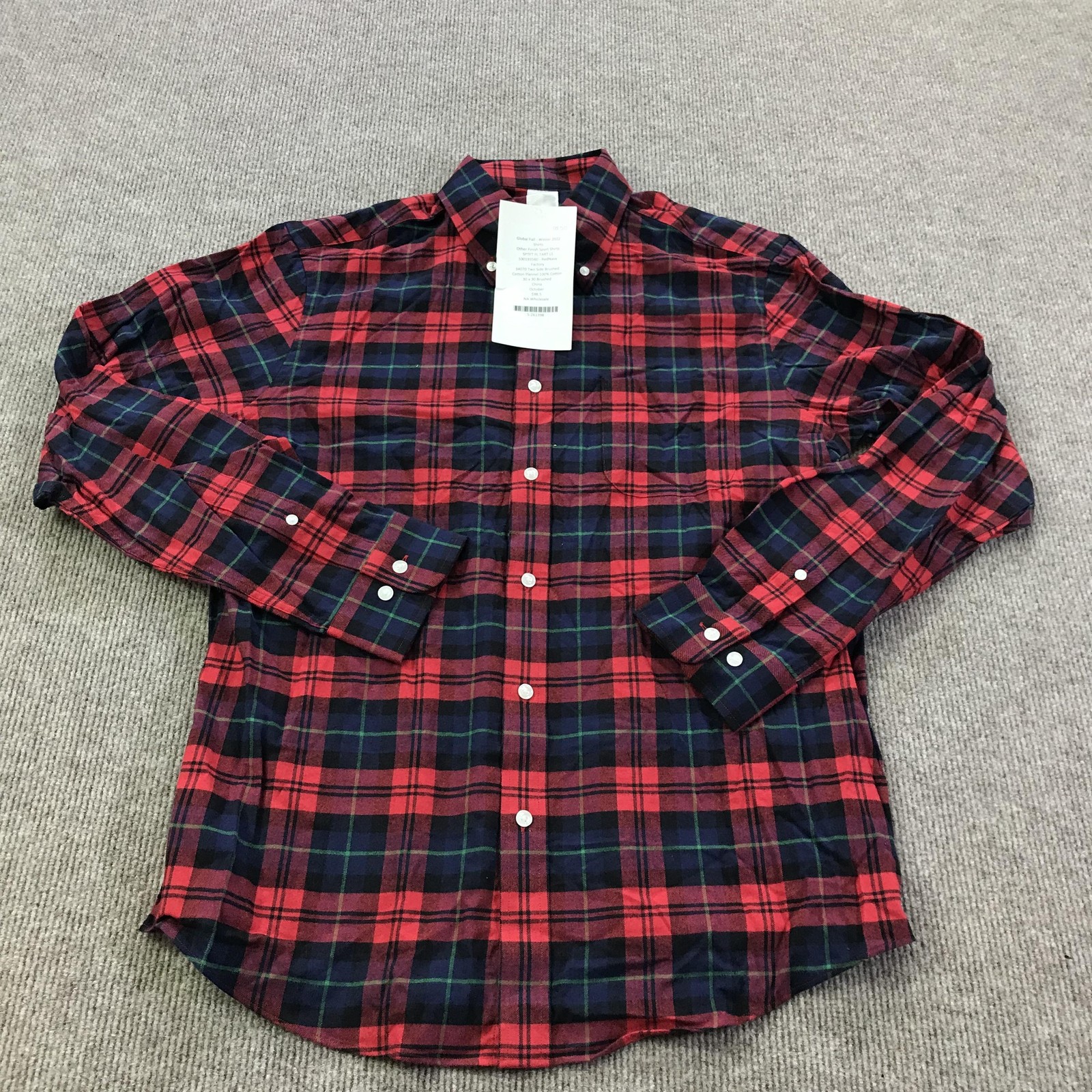 Plaid Flannel Shirt Mens Medium Large Red Navy Button Down Long Sleeve Cotton