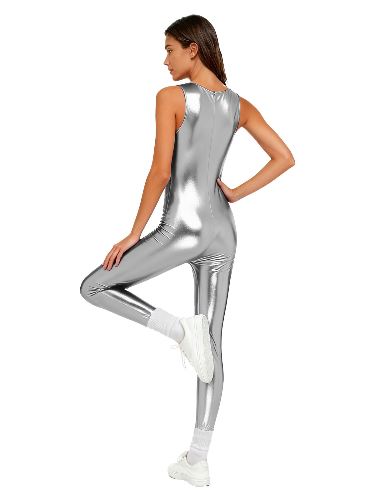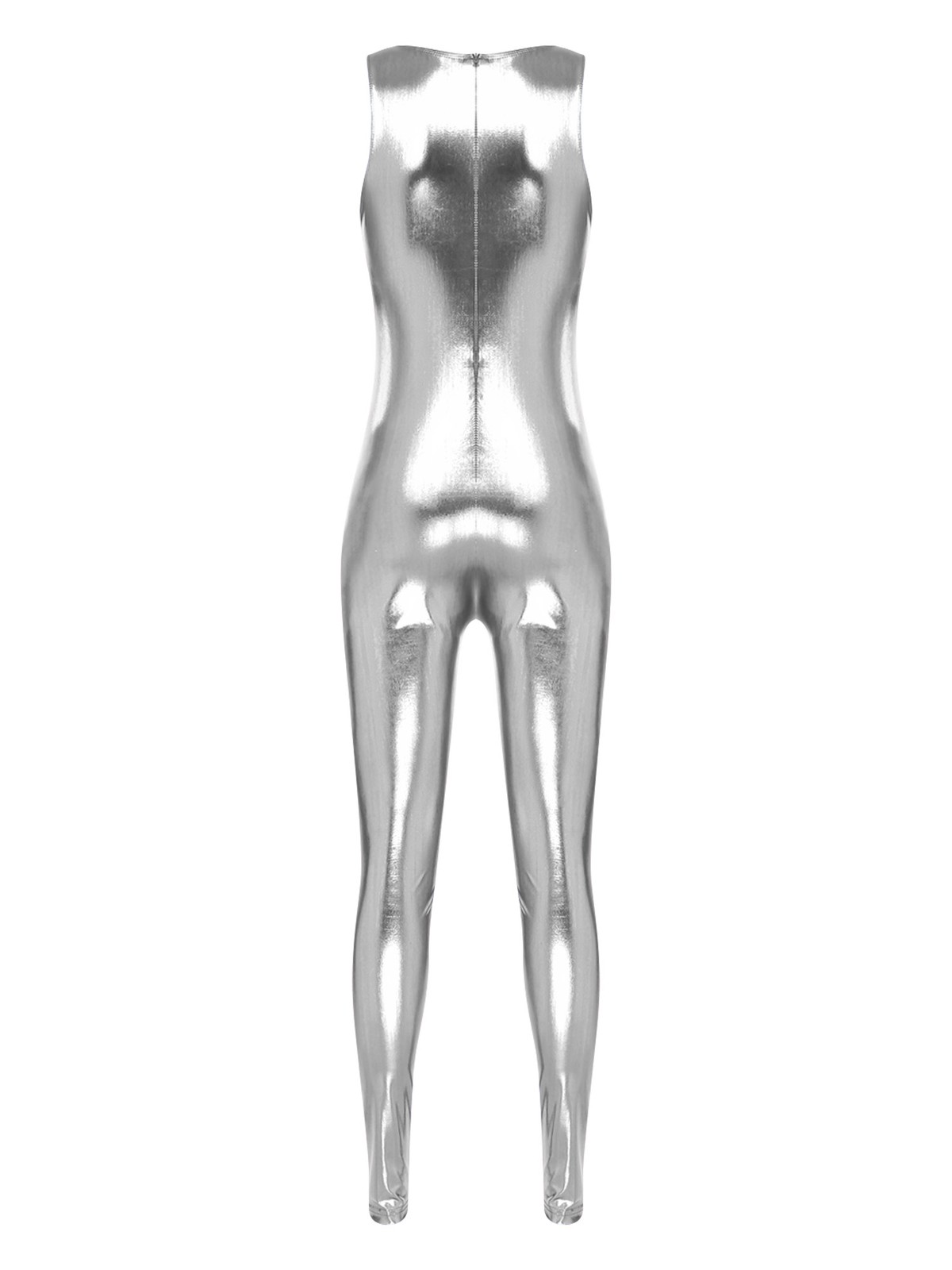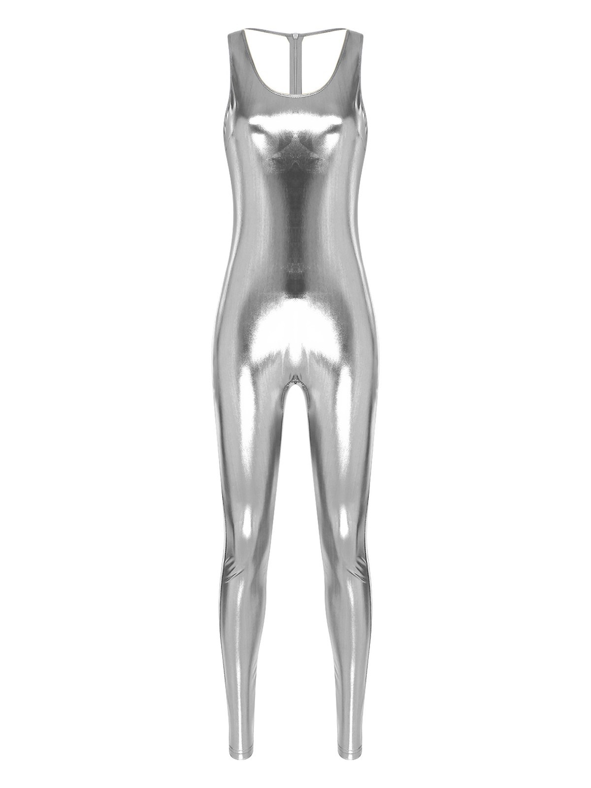 Women's Metallic Bodysuit Wet Look Dance Bodysuit Gymnastics Catsuit Unitard