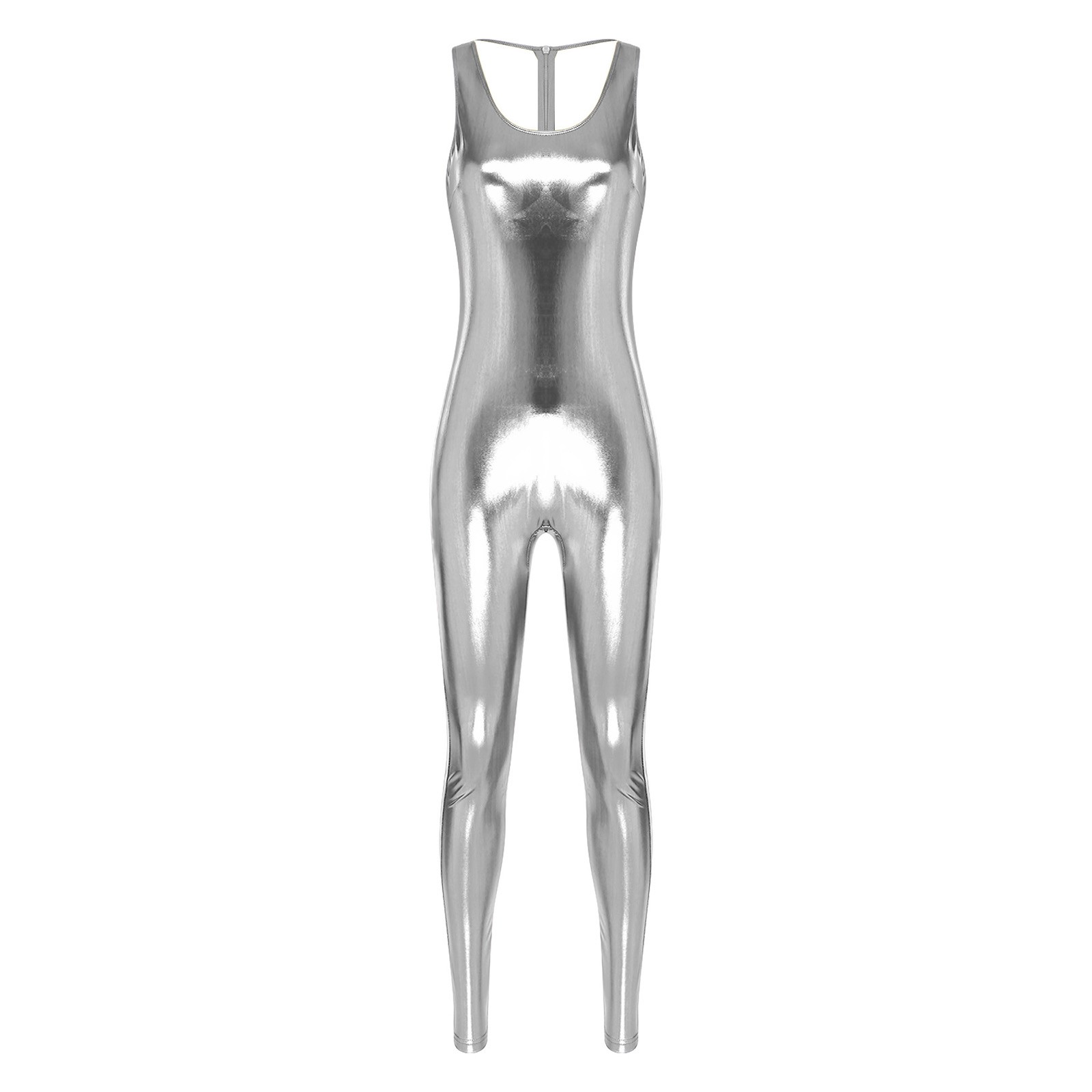 как выглядит Womens Metallic Bodysuit Wet Look Dance Bodysuit Gymnastics Catsuit Unitard фото