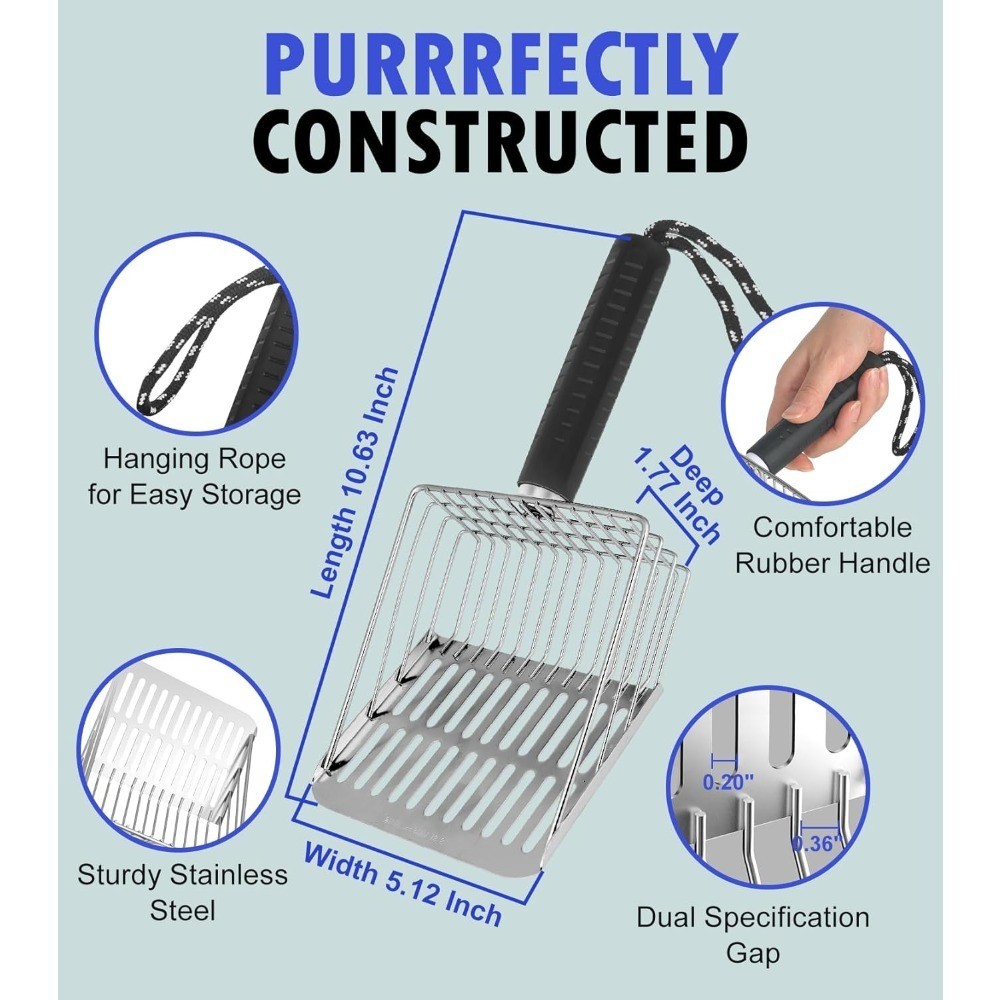 Stainless Steel Cat Litter Scoop with Sifter Heavy Duty Metal Scooper for Litter