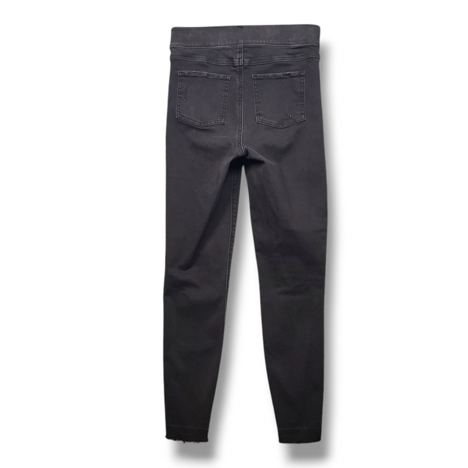 Spanx Ankle Skinny Jeans Womens Small Black Raw Hem Distressed Pull On