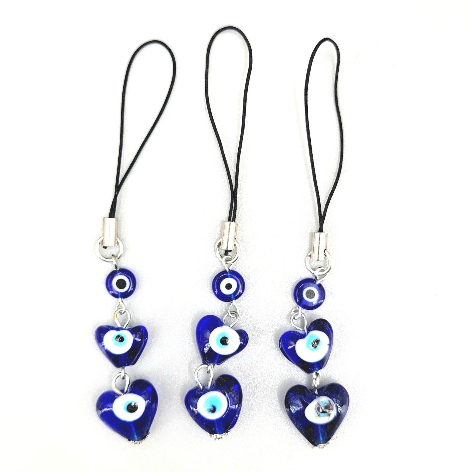 Blue Evil Eye Heart Charm Cell Phone Strap Keychain Bag Accessory