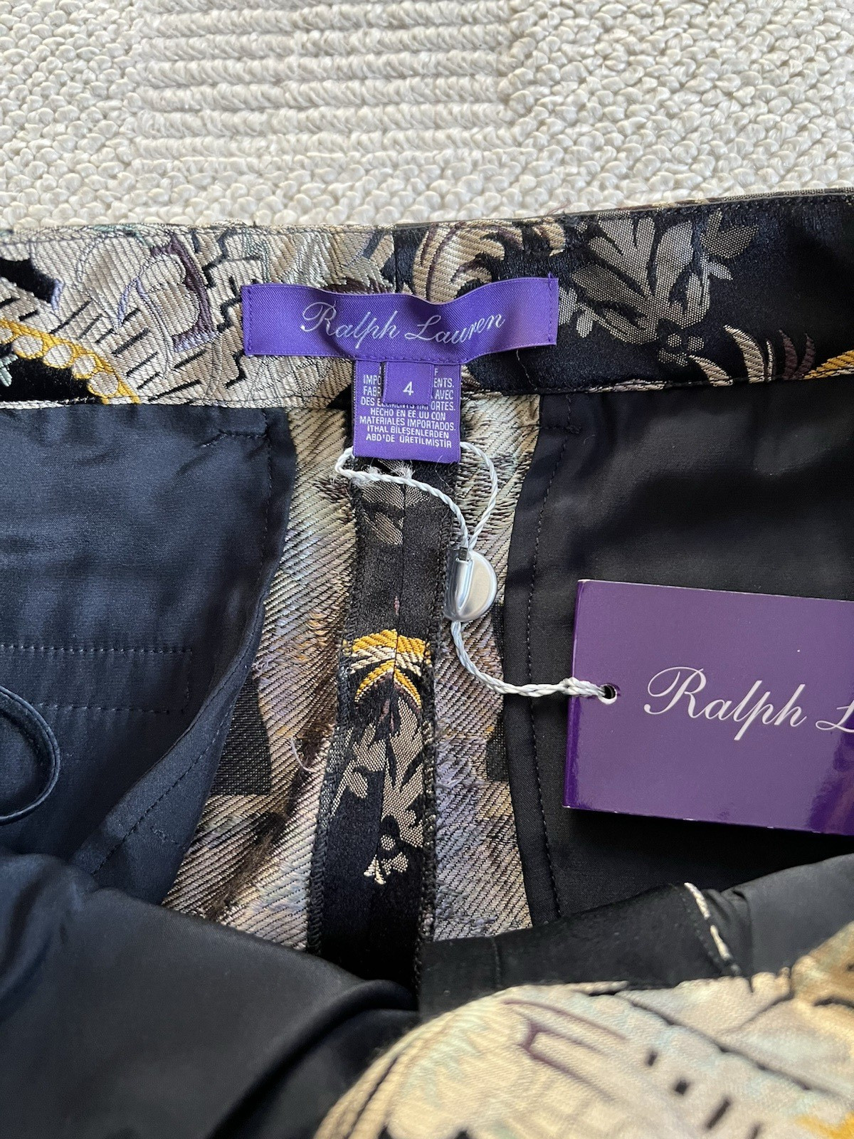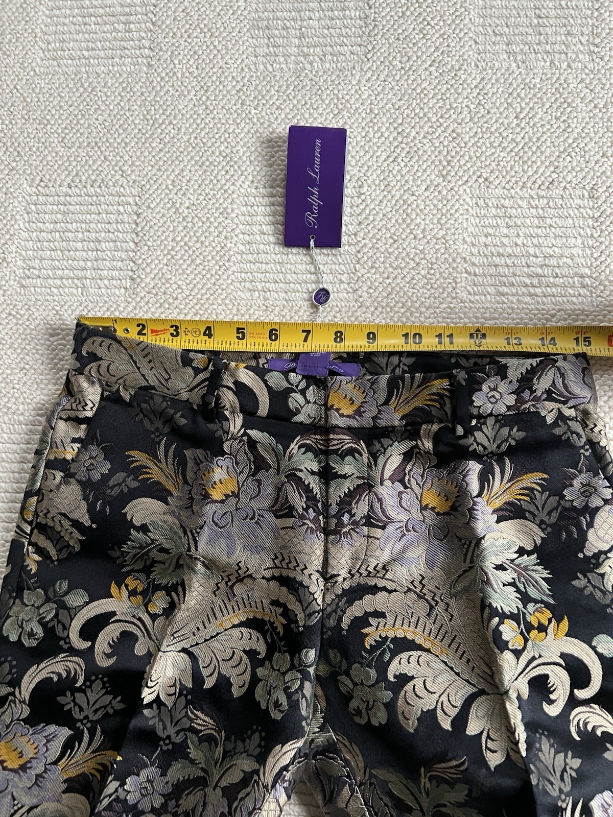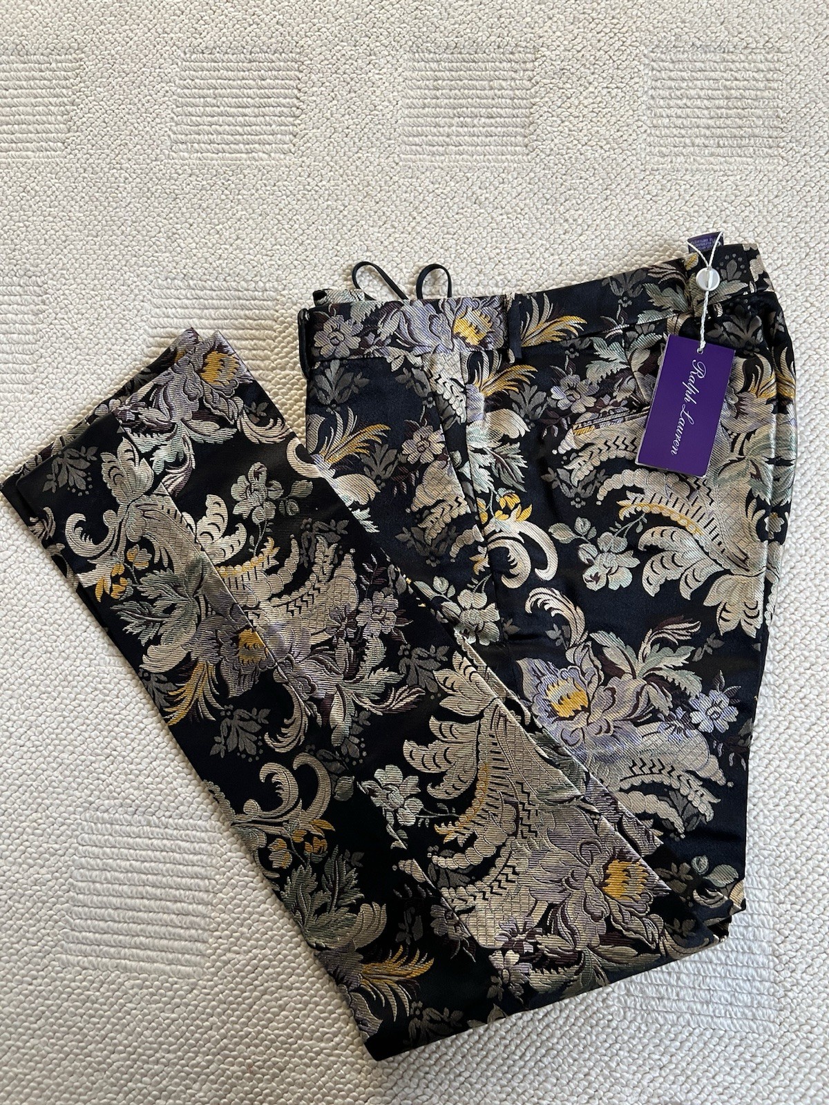 как выглядит NEW 1790 Ralph Lauren Purple Label RUNWAY Gold Floral Silk Jacquard Pants sz 4 фото
