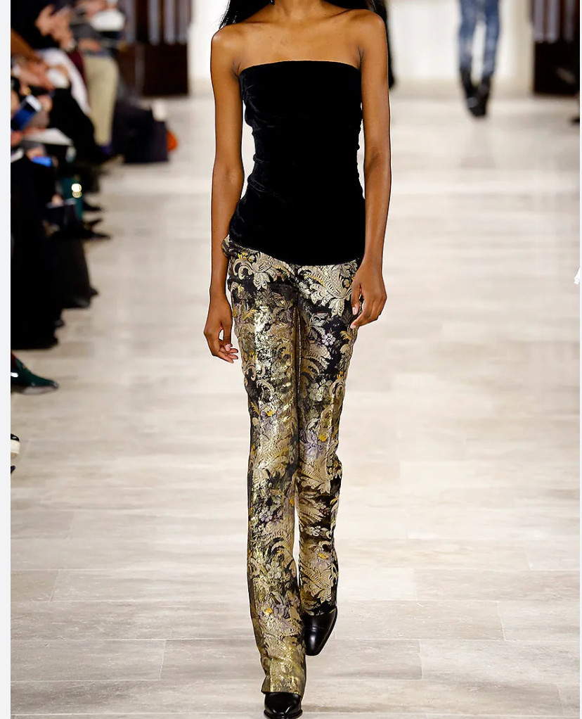 NEW 1790 Ralph Lauren Purple Label RUNWAY Gold Floral Silk Jacquard Pants sz 4