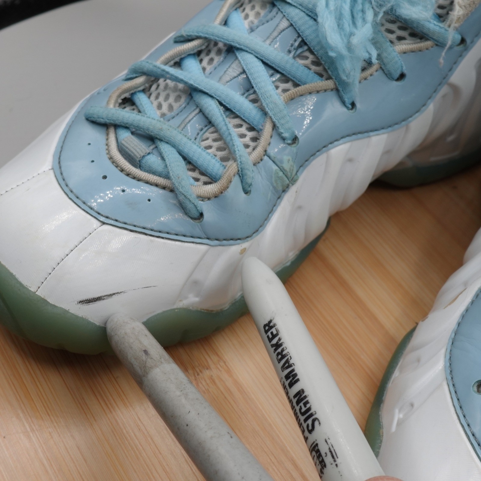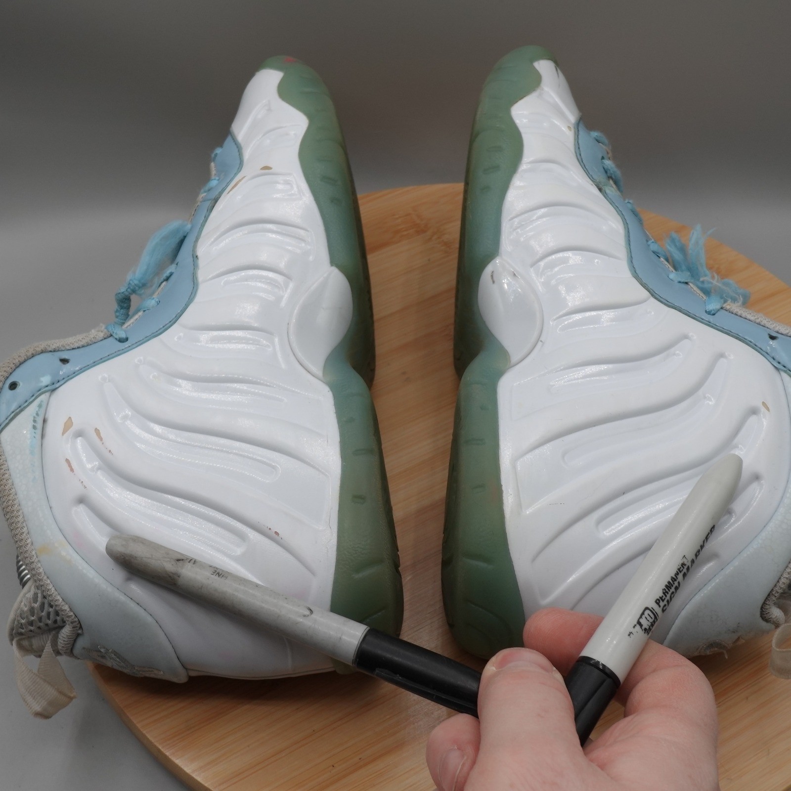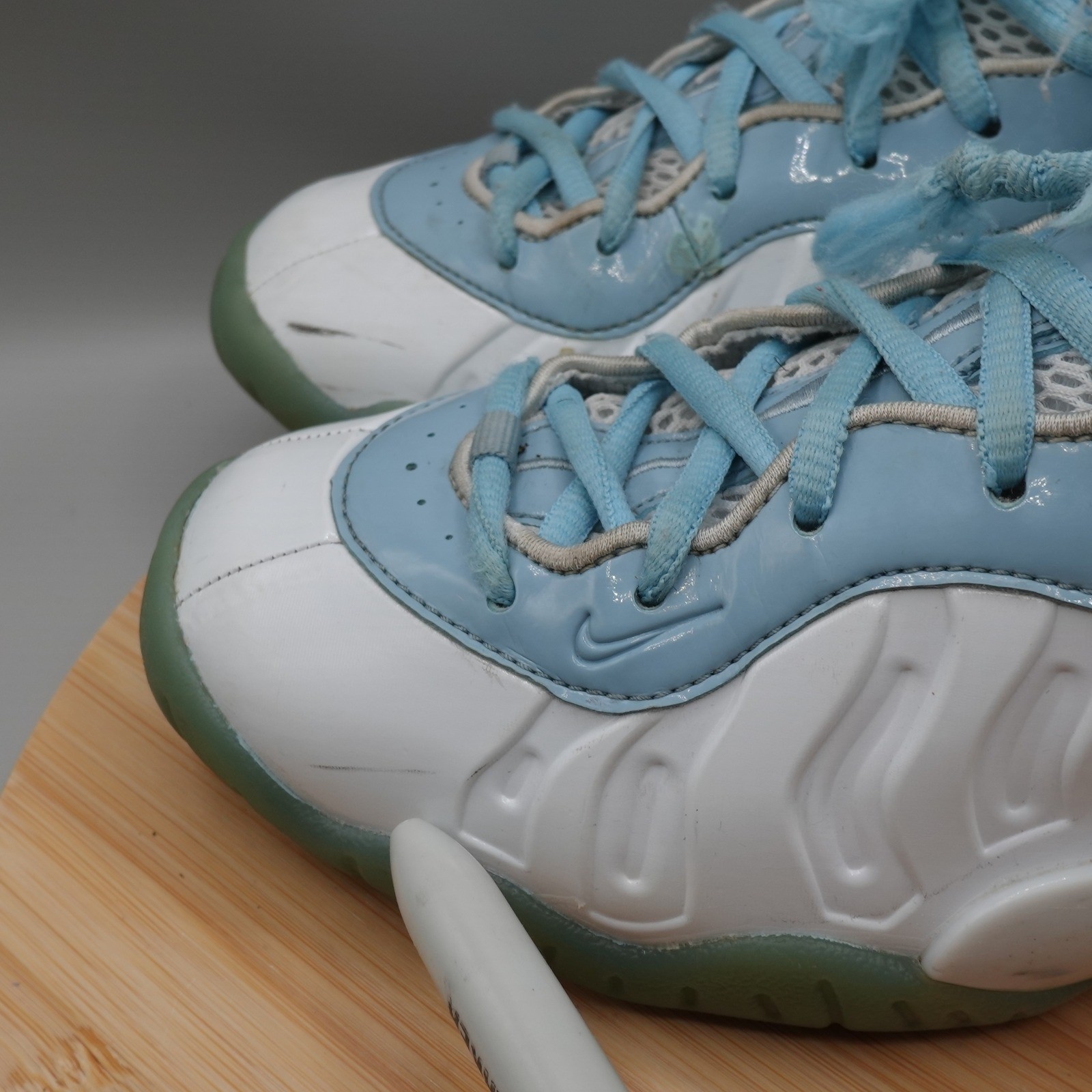 как выглядит Nike Shoes 6Y Little Posite One GS Aura Blue White Foamposite DM1090-400 Flaw фото